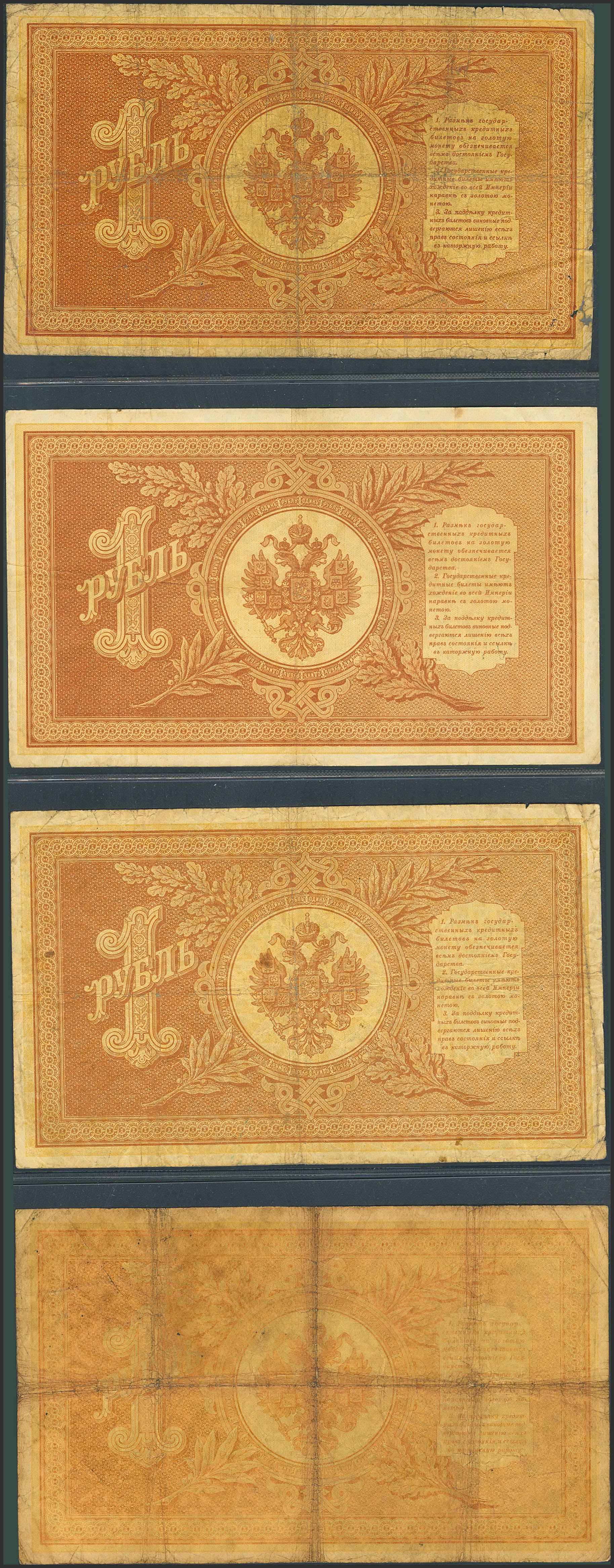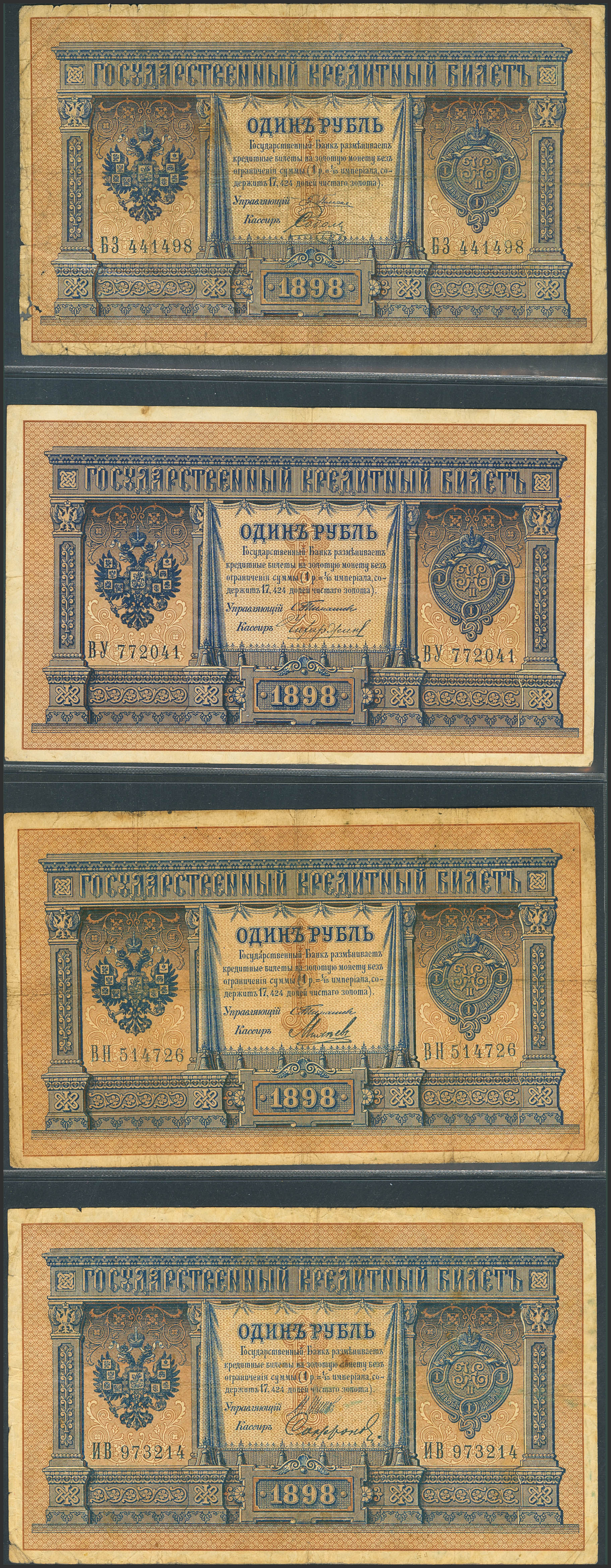 RUSSIA-EMPIRE. Lot of 4 notes of 1 Ruble. 1898. Gosudarstvenniy Bank. Mixed Signatures. (Pick: 1a, 1b(2), 1d). Fine / More than Very Fine.