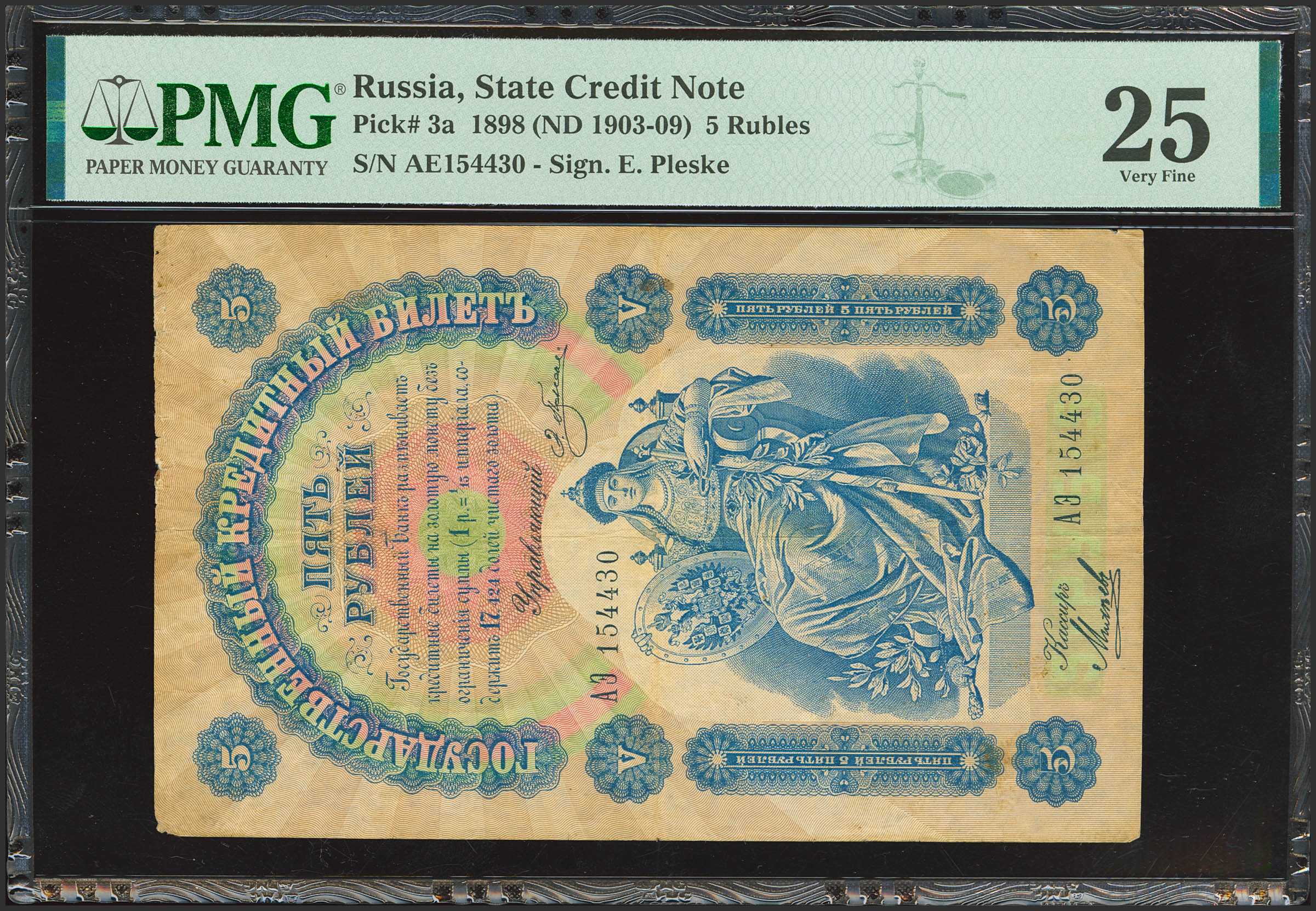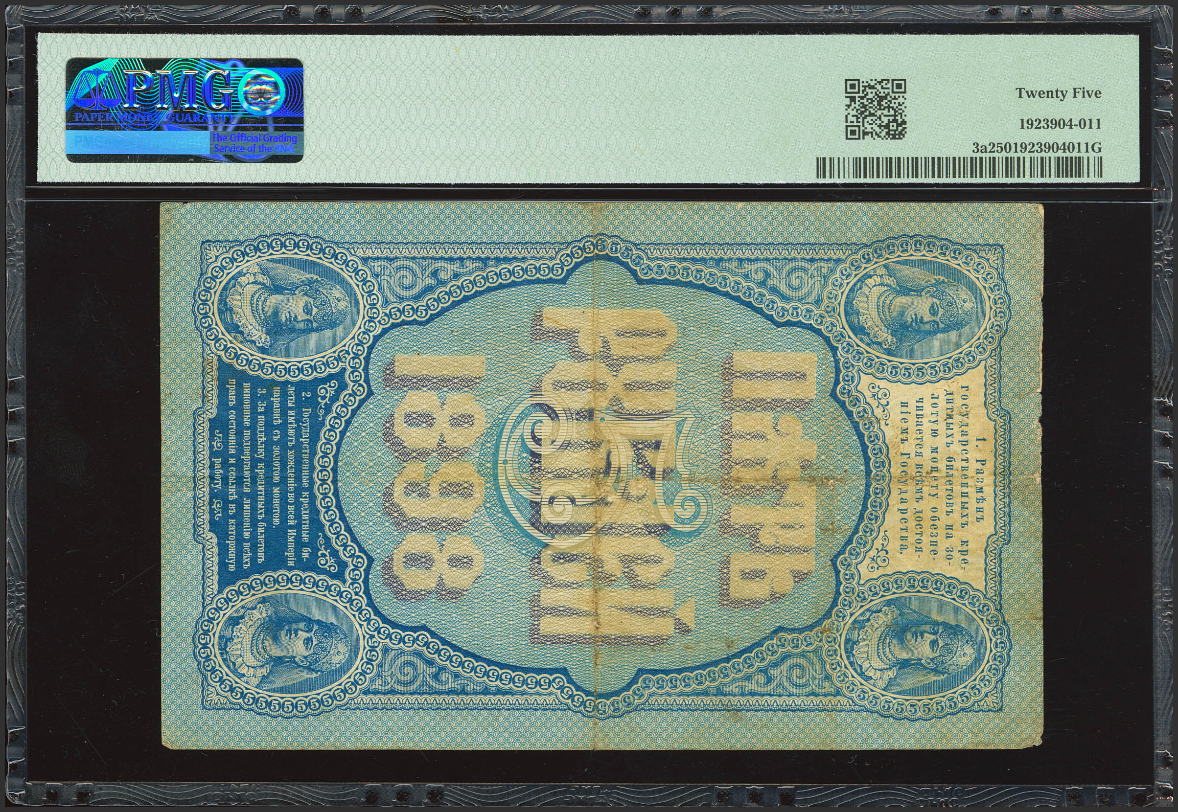 RUSSIA-EMPIRE. 5 Rubley. 1898. Gosudarstvenniy Bank. Signatures of Pleske and Ivanov. (Pick: 3a). PMG25.