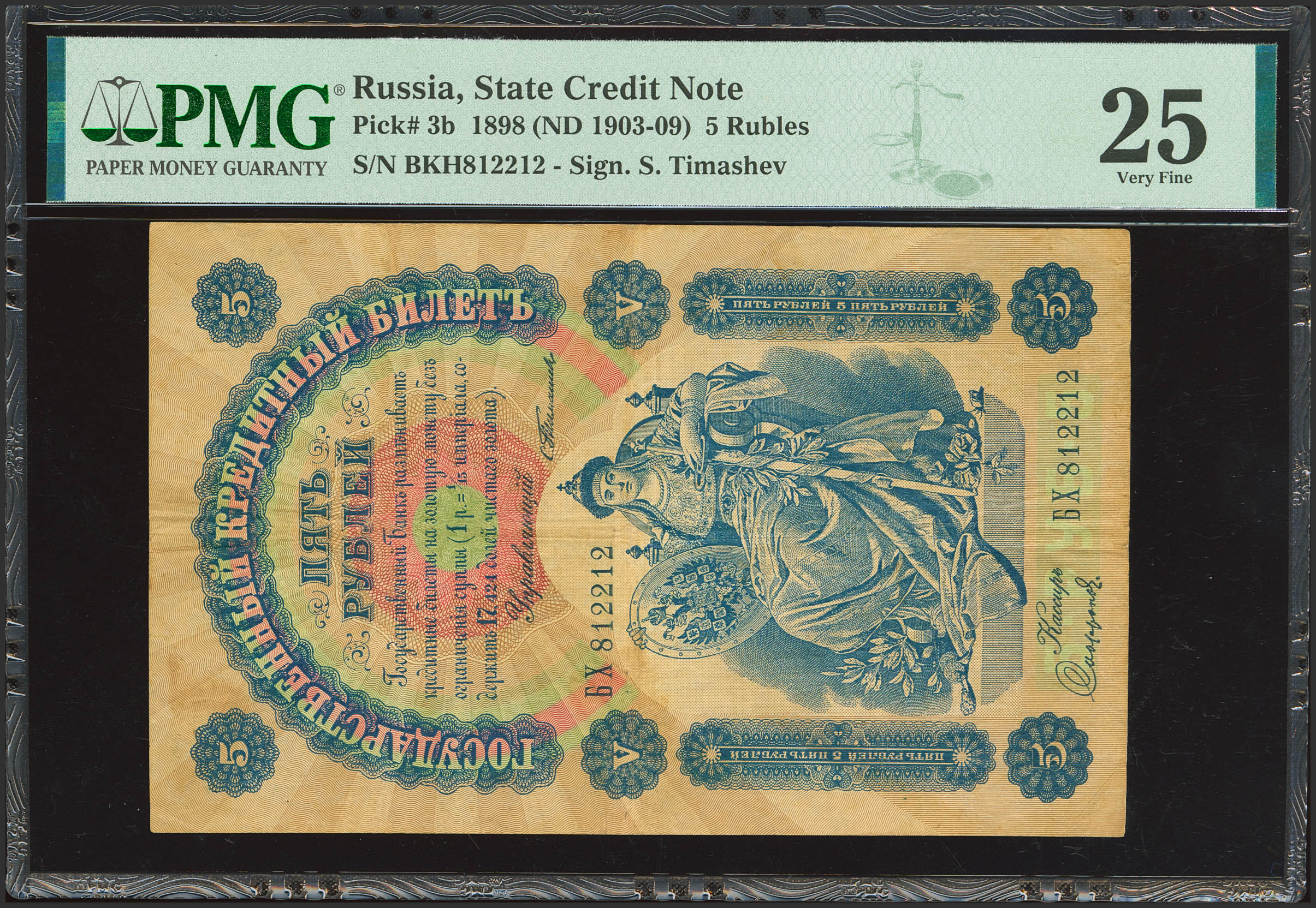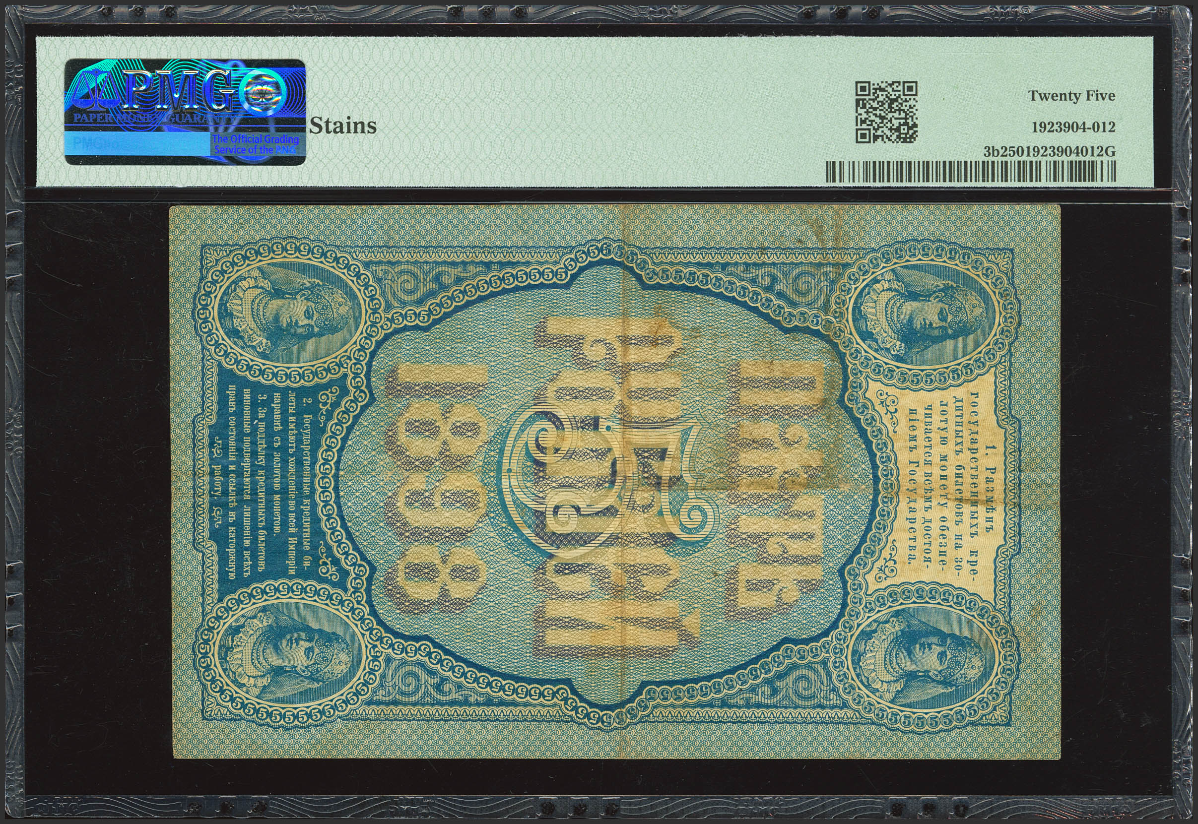 RUSSIA-EMPIRE. 5 Rubley. 1898. Gosudarstvenniy Bank. Signatures of Timashev and Sofronov. (Pick: 3b). PMG25 (stains).