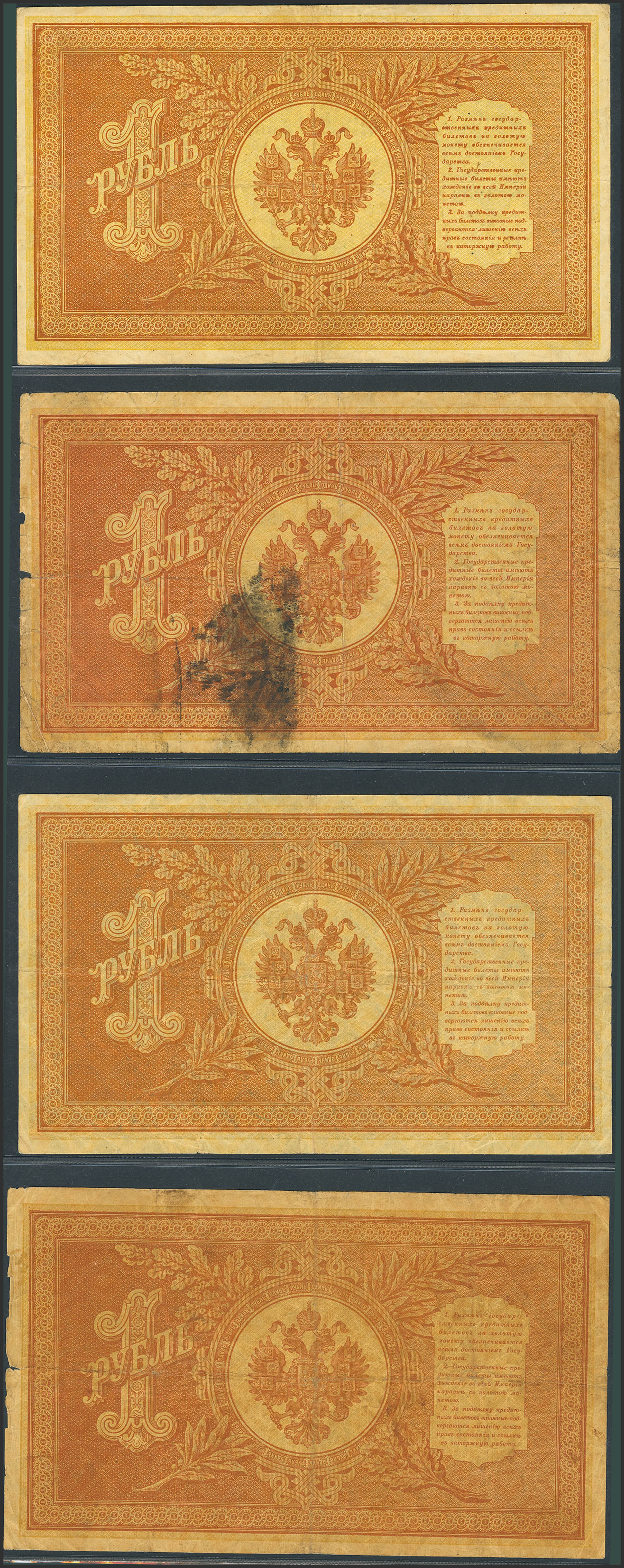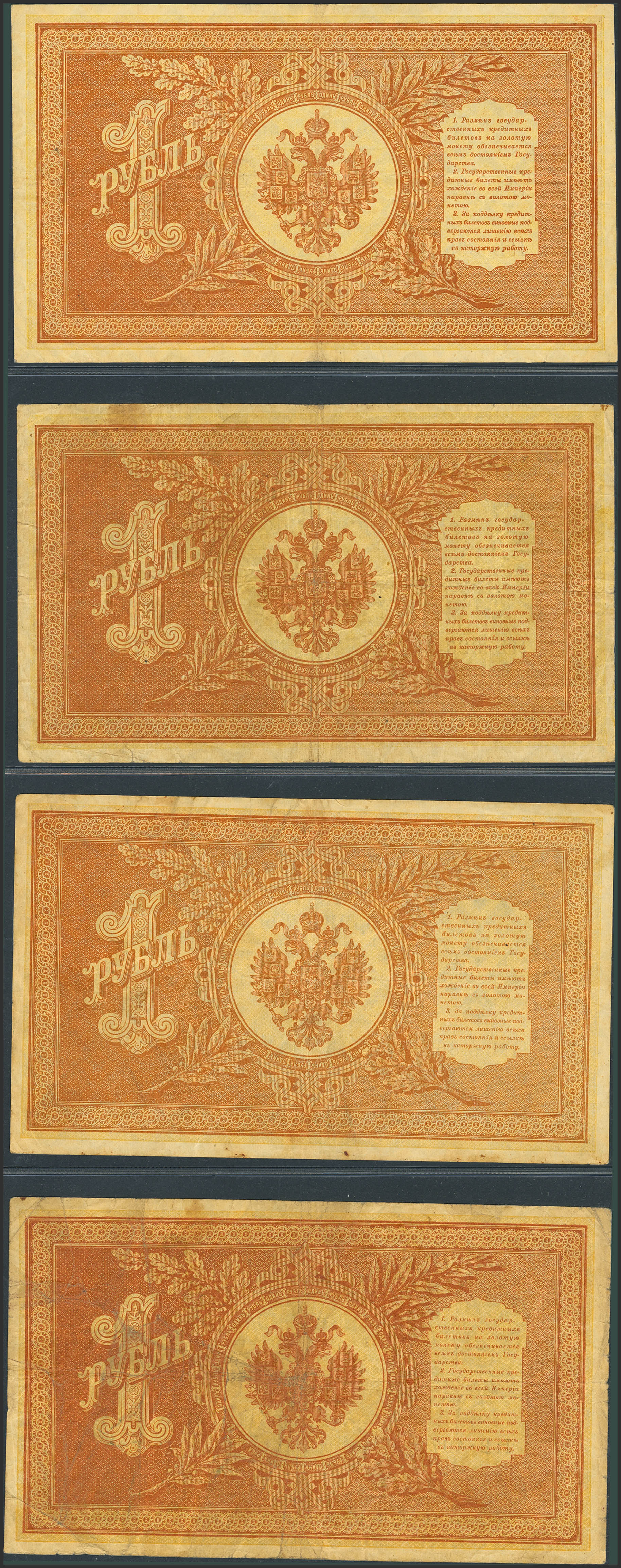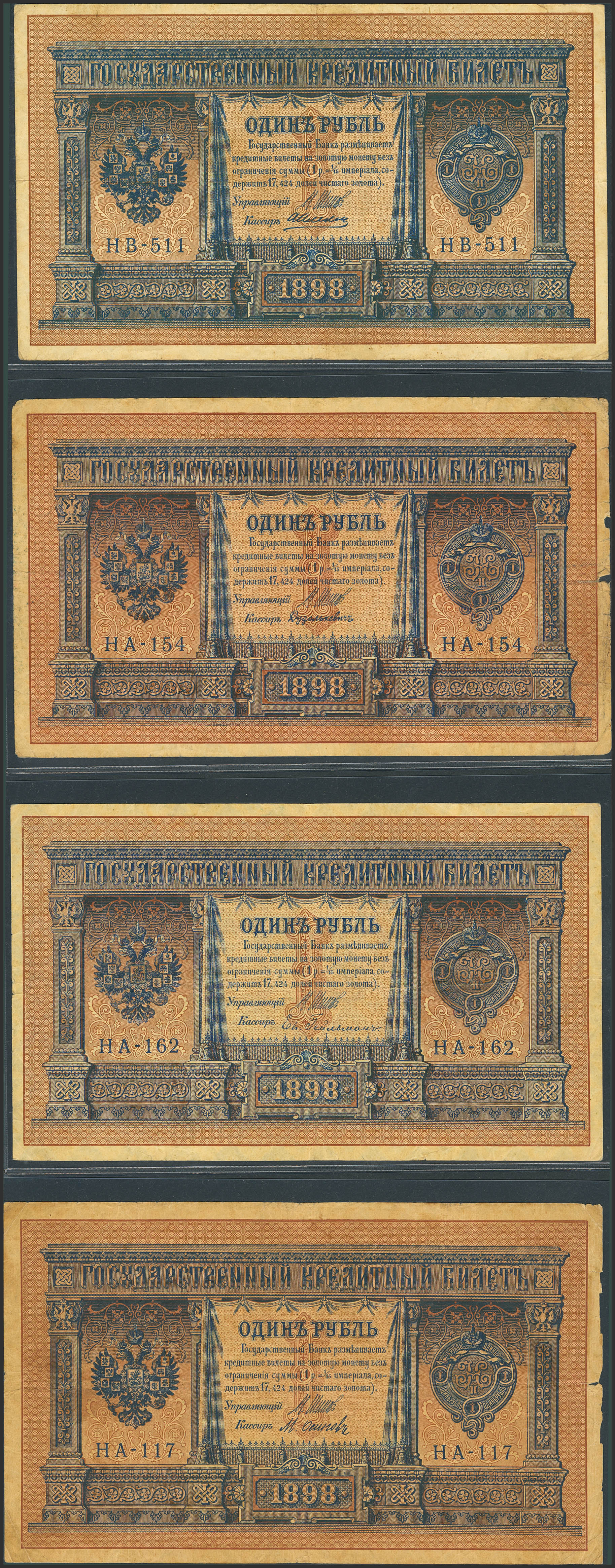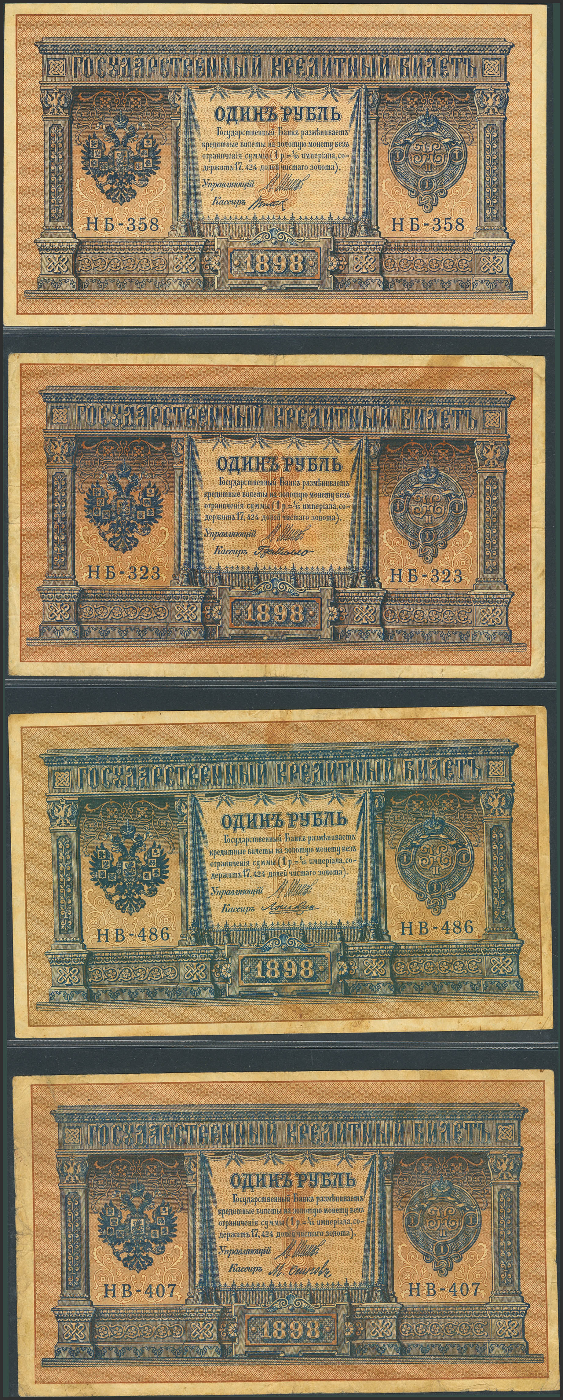 RUSSIA-EMPIRE. Lot of 8 notes of 1 Ruble. 1898. Gosudarstvenniy Bank. Signature of Manager Shipov. Mixed cashier signatures. (Pick: 15). Tears and pinholes. Very Fine (4), More than Very Fine (3) and Extremely Fine (1).