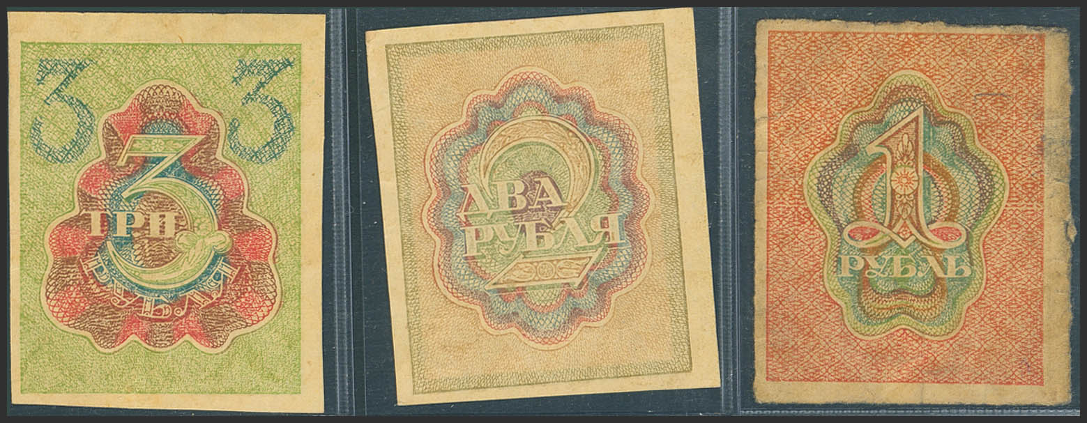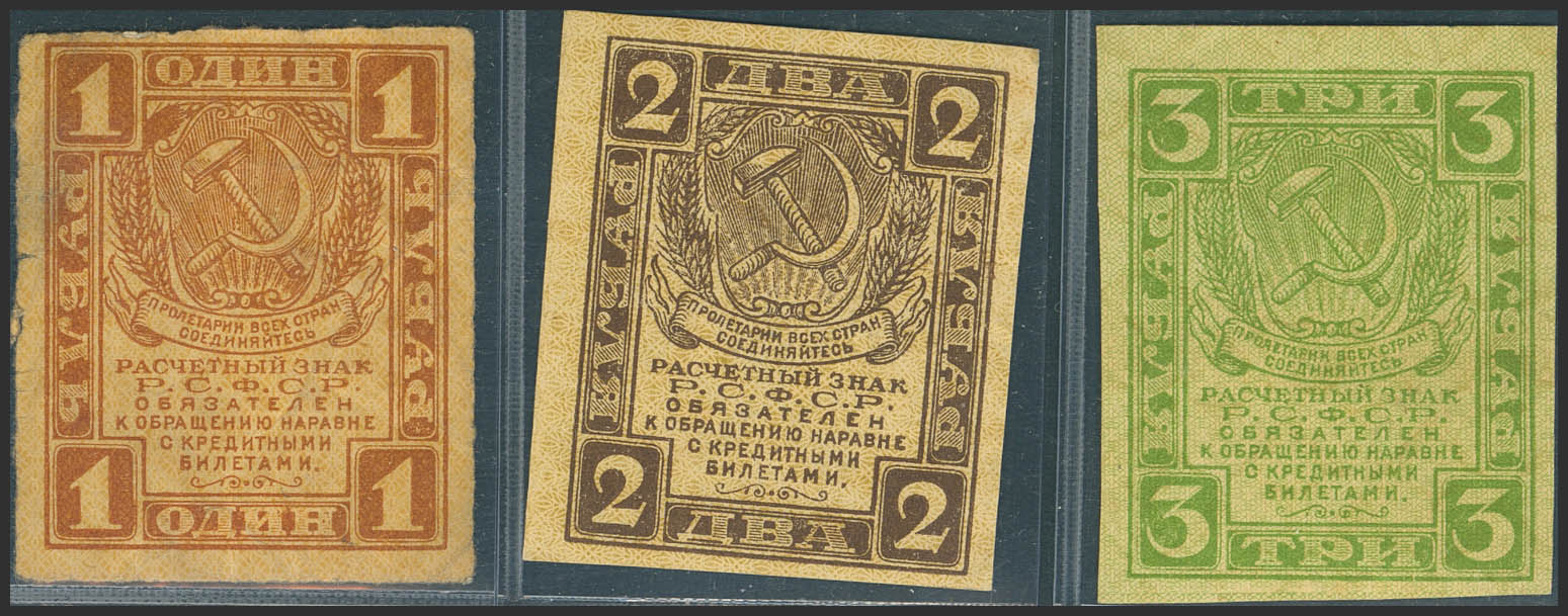 RUSSIA-RSFSR. Lot of 3 notes from 1 at 3 Rubles. (1919ca). Treasury. (Pick: 81, 82, 83). More than Extremely Fine (1) and Almost Uncirculated (2).