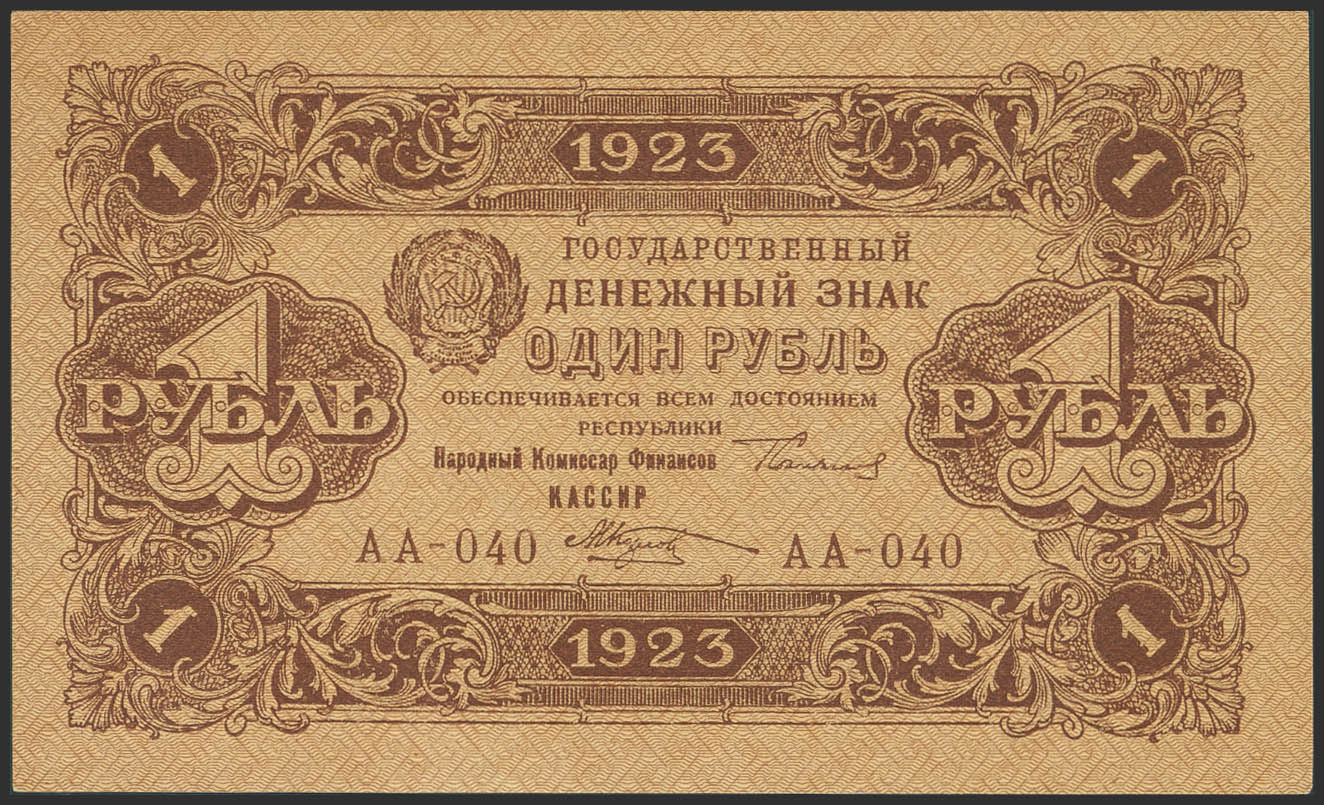RUSSIA-RSFSR. 1 Ruble. 1923. Narodniy Komissariat Finantsov. Lower signatura of Kozlov. (Pick: 163). Less than Uncirculated.