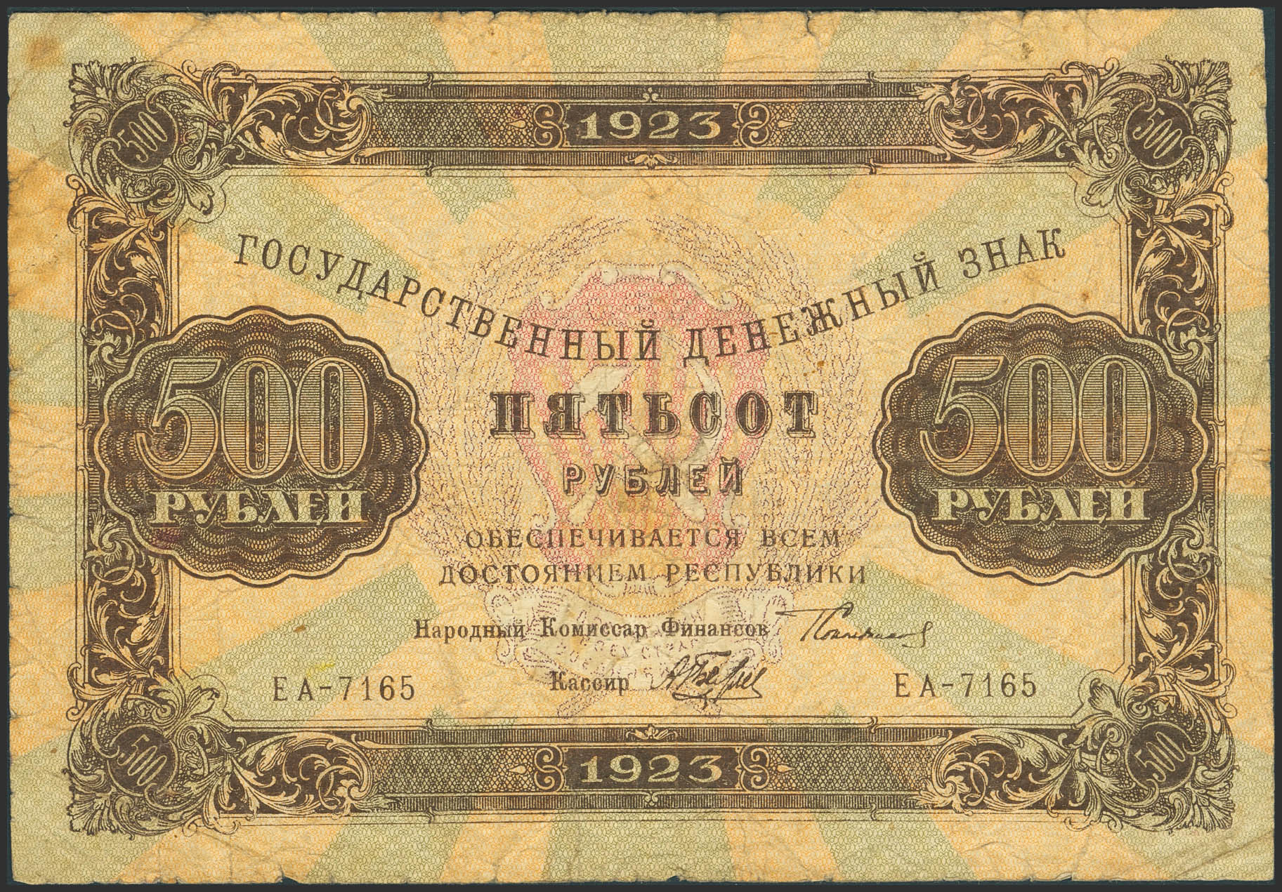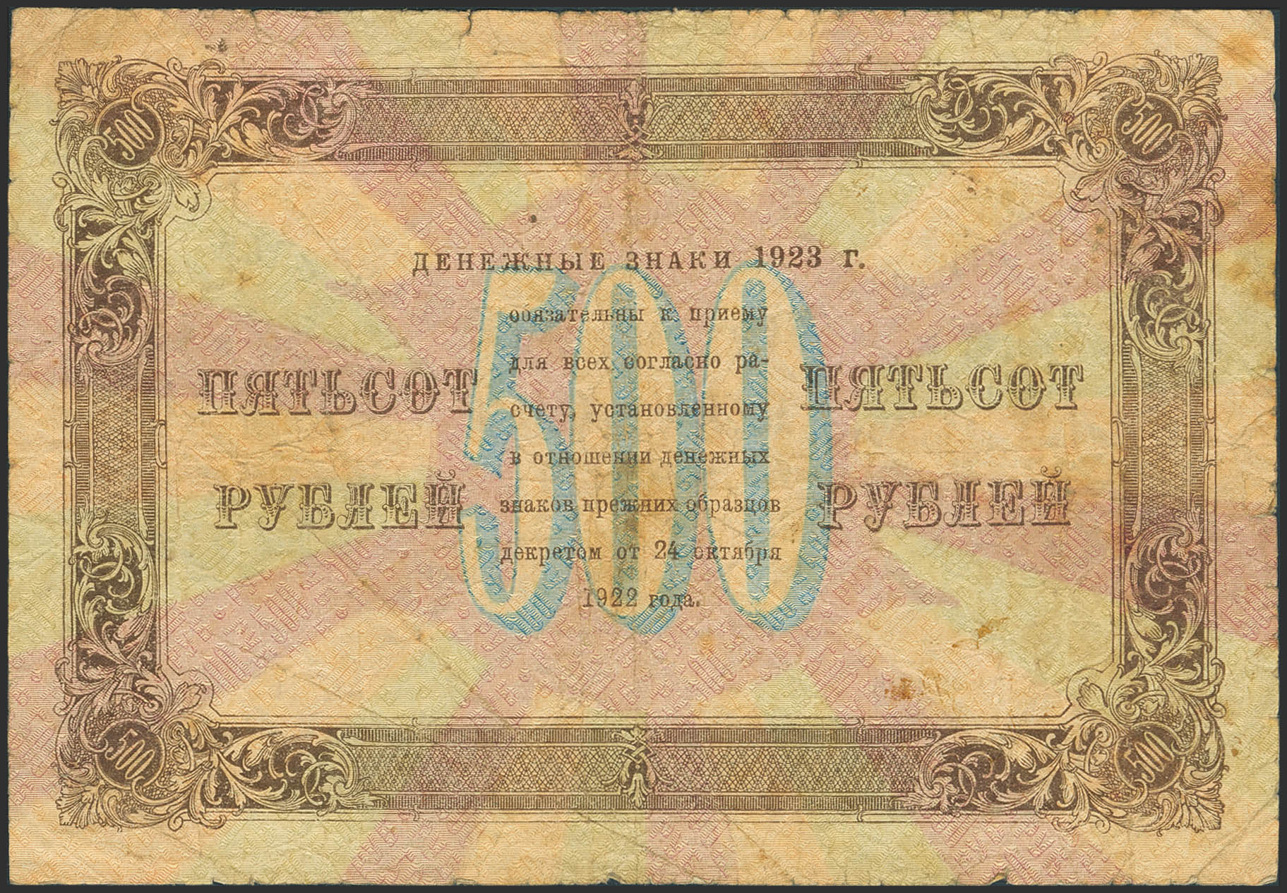 RUSSIA-RSFSR. 500 Rubley. 1923. Narodnniy Komissariat Finantsov. Belyayev. (Pick: 169). Fine, tears.