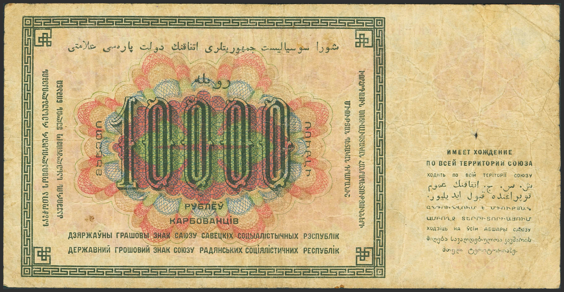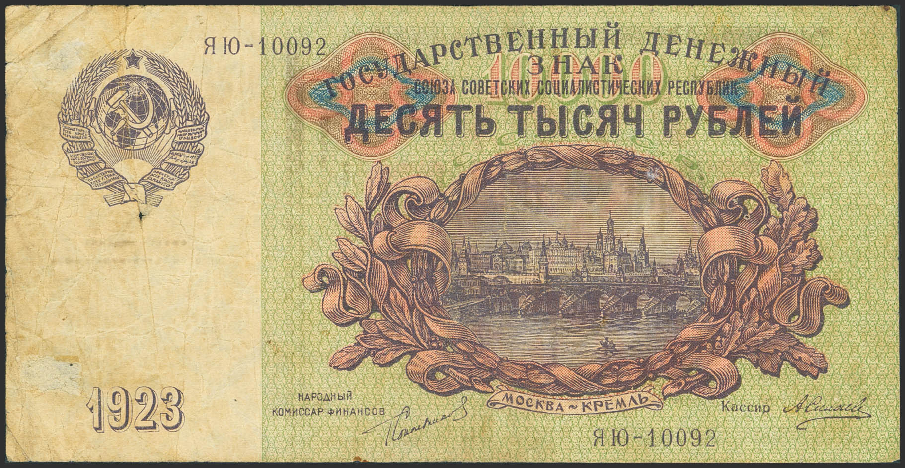 RUSSIA-SOVIET UNION. 10000 Rubley. 1923. Gosudarstvenniy Bank. Right signature of Silayev. (Pick: 181). Pinholes. Fine.