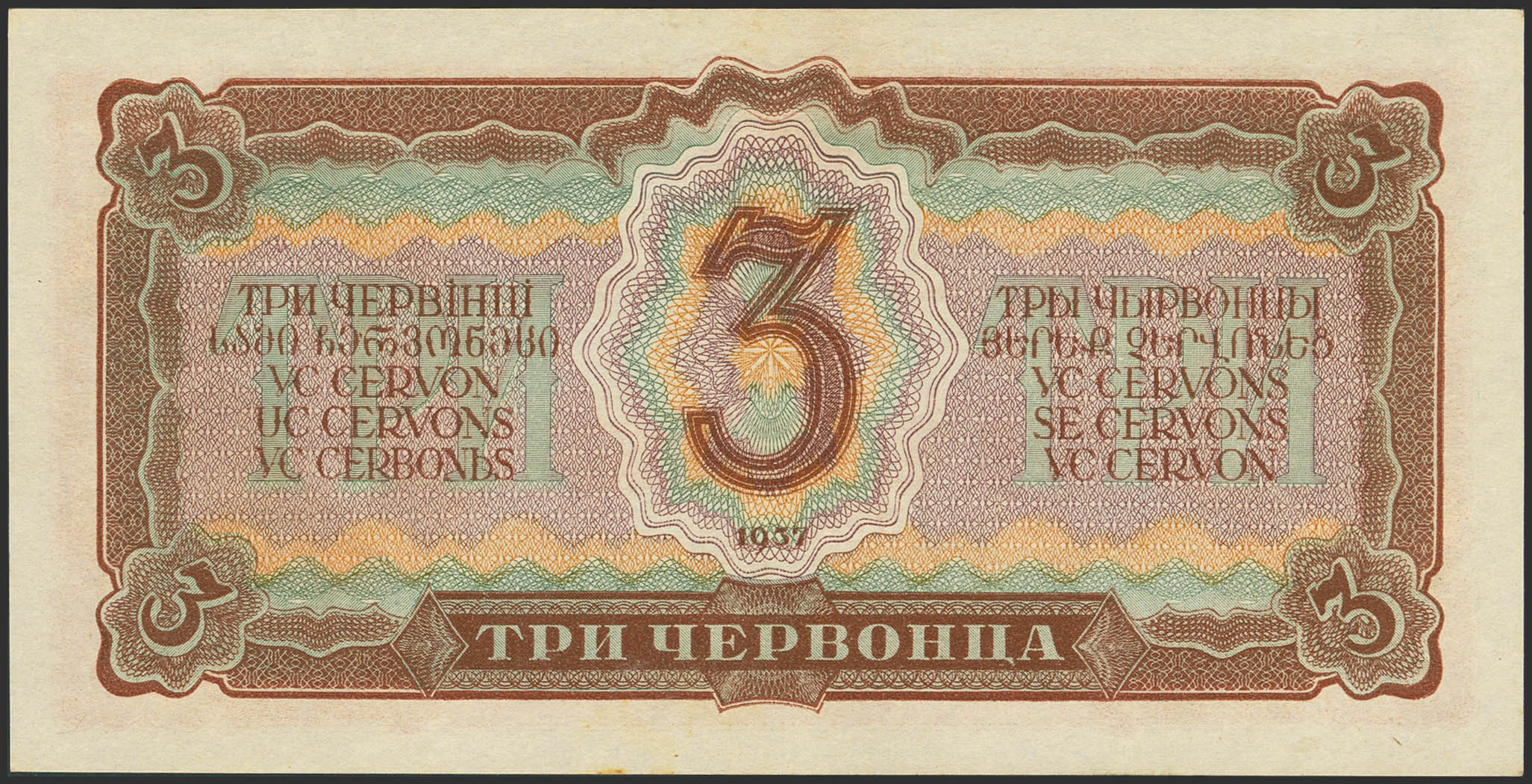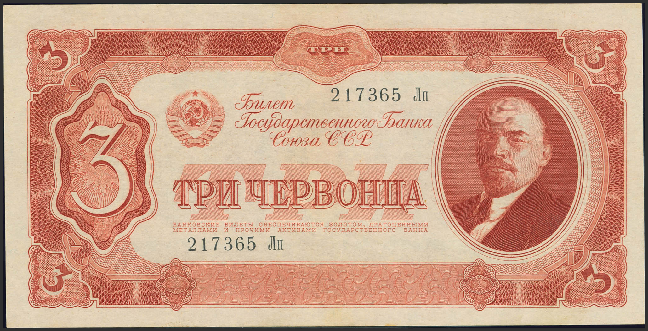 RUSSIA-SOVIET UNION. 3 Chervontsa. 1937. Gosudarstvenniy Bank Soyuza SSR. (Pick: 203a). Almost Uncirculated.