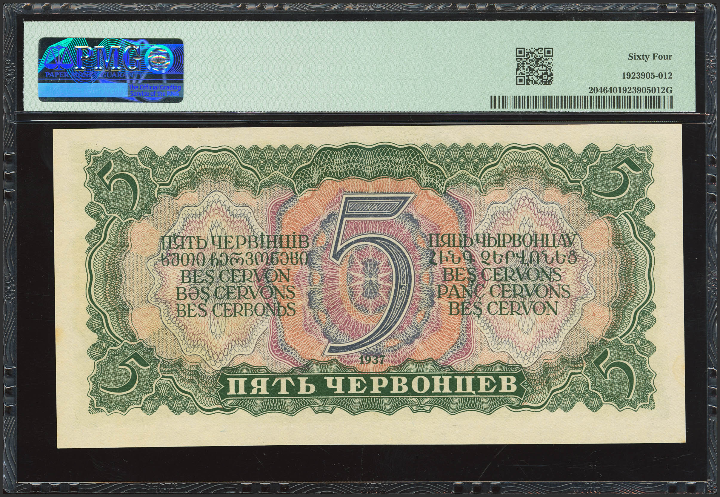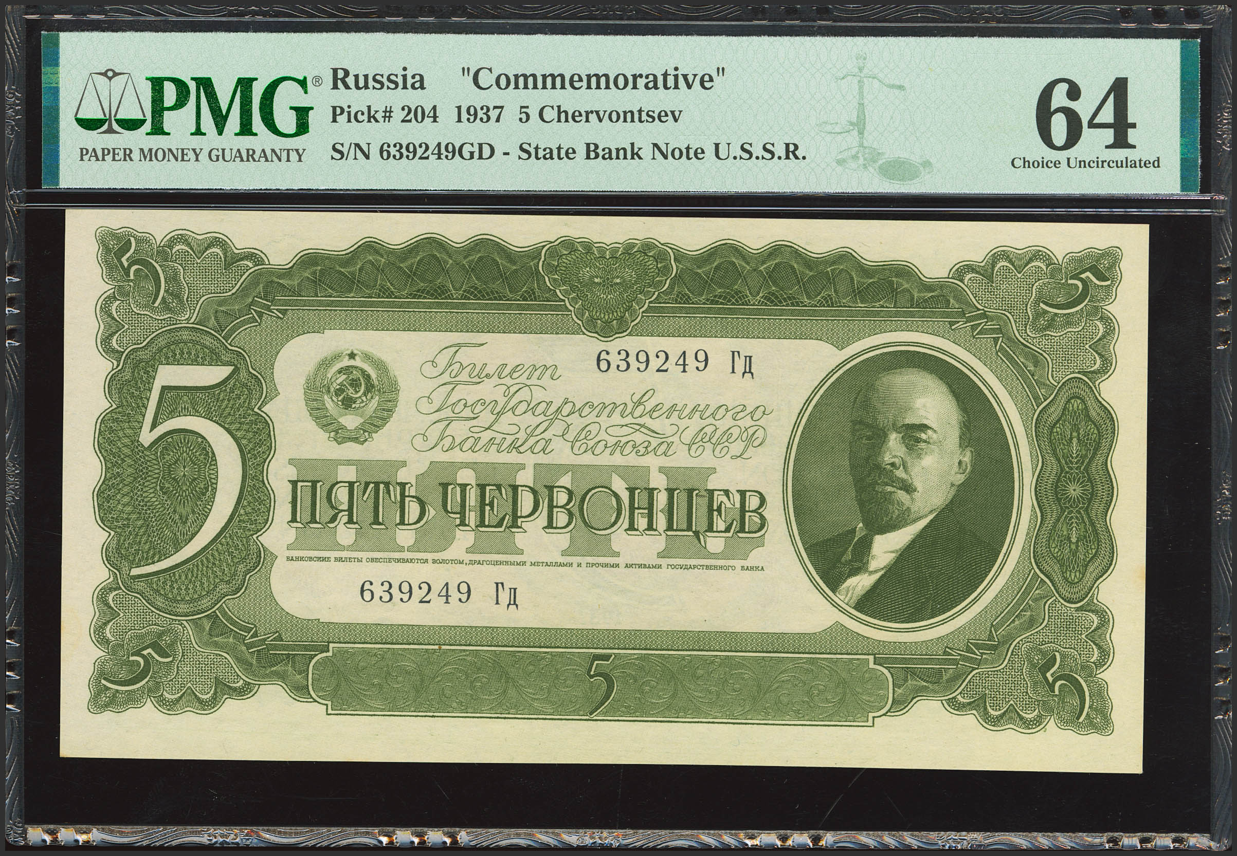 RUSSIA-SOVIET UNION. 5 Chervontsev. 1937. Gosudarstvenniy Bank Soyuza SSR. (Pick: 204). PMG64.