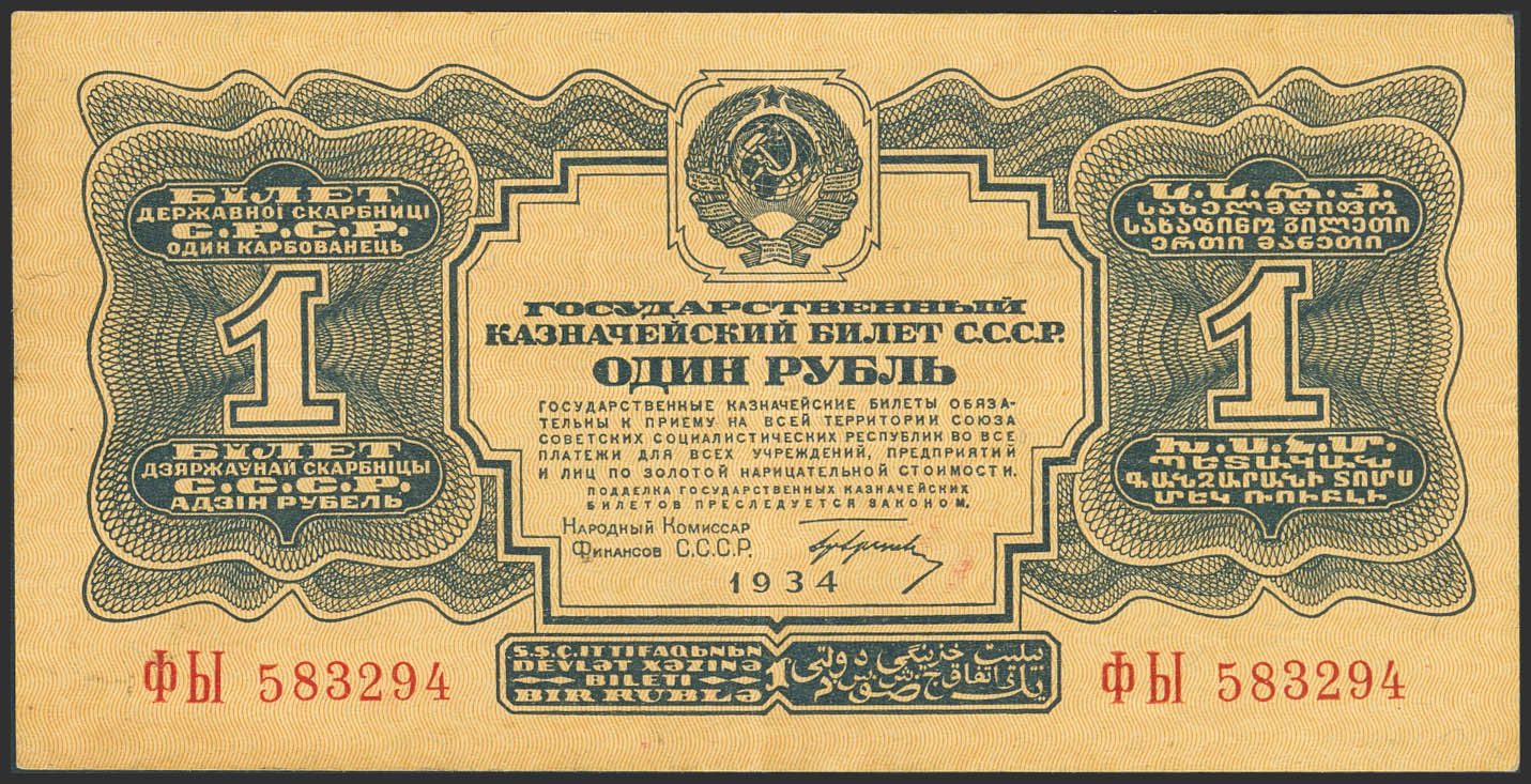 RUSSIA-SOVIET UNION. 1 Ruble. 1934. Treasury. (Pick: 207a). Extremely Fine.