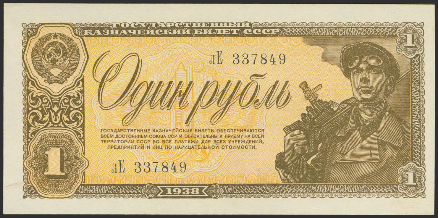 RUSSIA-SOVIET UNION. 1 Ruble. 1938. Treasury. (Pick: 213). Less than Uncirculated.