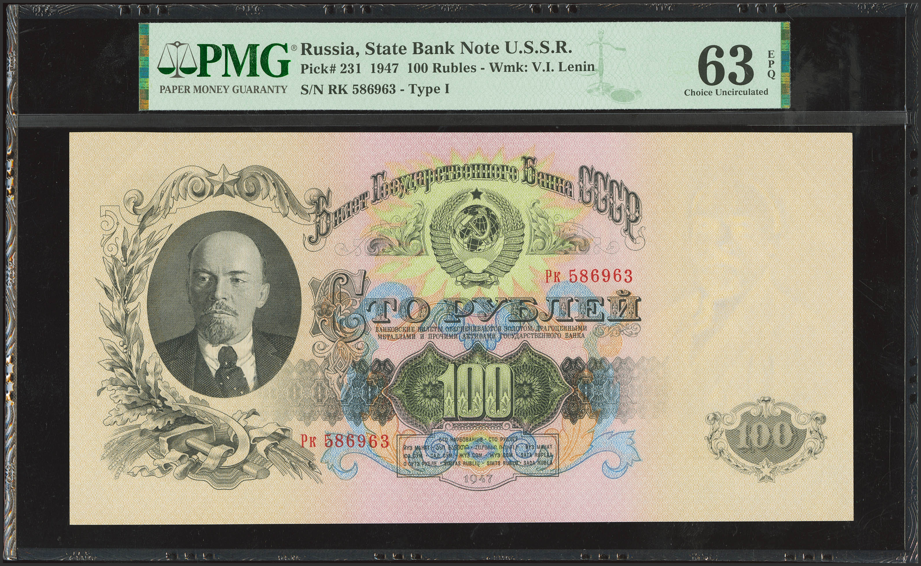 RUSSIA-SOVIET UNION. 100 Rubles. 1947. Gosudarstvenniy Bank SSSR. (Pick: 231). PMG63EPQ.