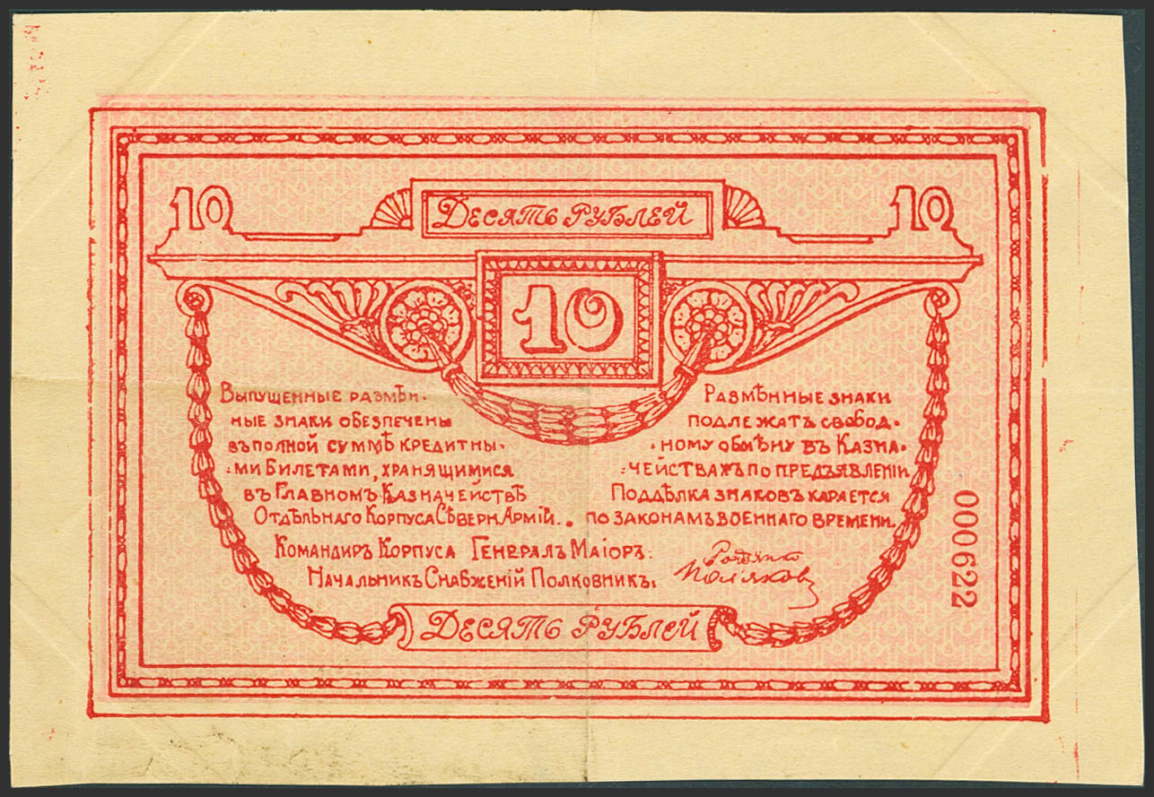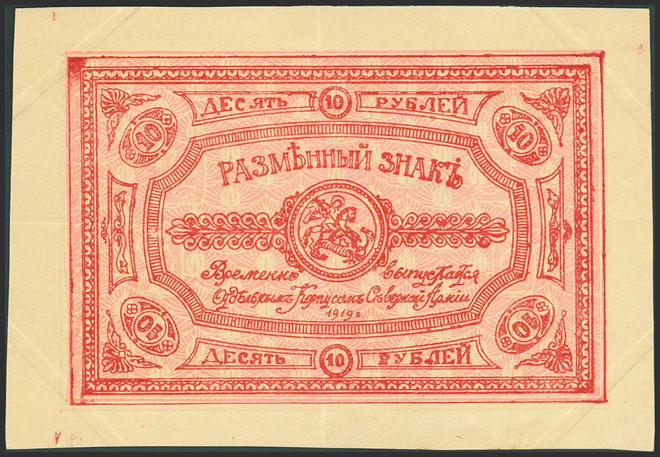 RUSSIA-NORTHWEST. 10 Rubles. 1919. Special Corps of Northern Army. General Rodzianko. (Pick: S221). More than Extremely Fine.