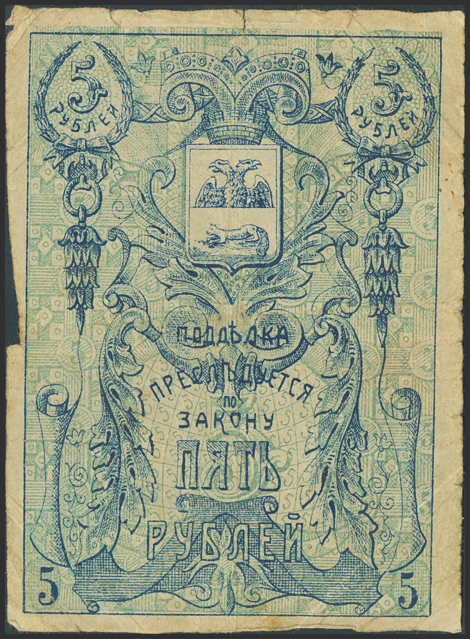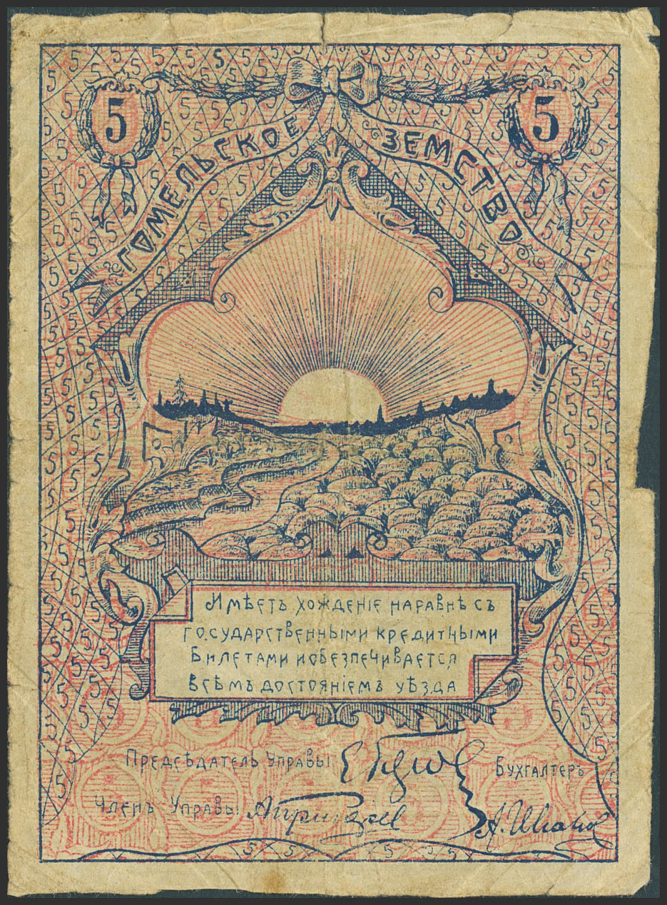 RUSSIA-NORTHWEST. 5 Rubles. (1918ca). Gomel Zemstvo. (Pick: Unlisted). Pinholes and tears. Fine.