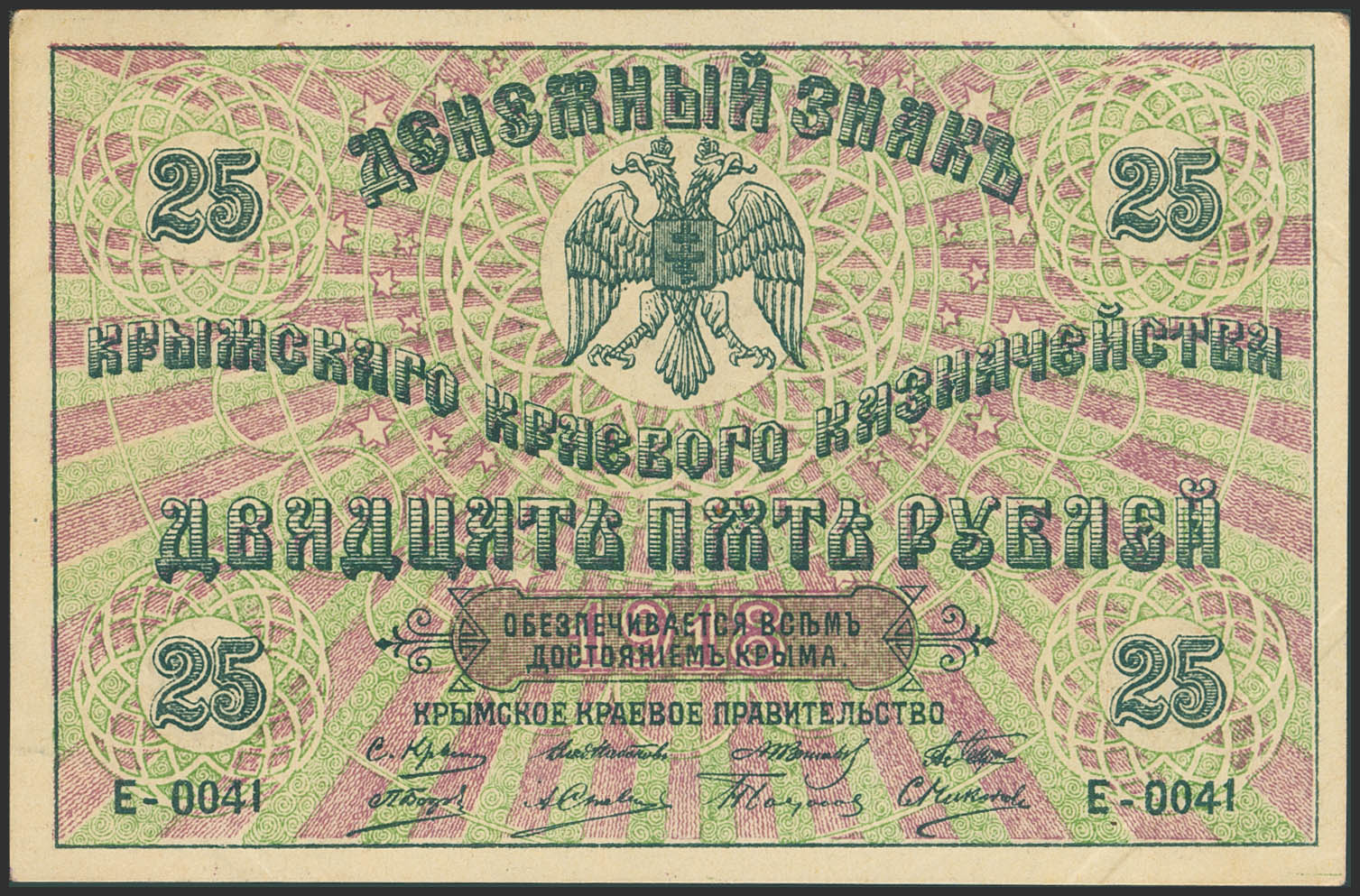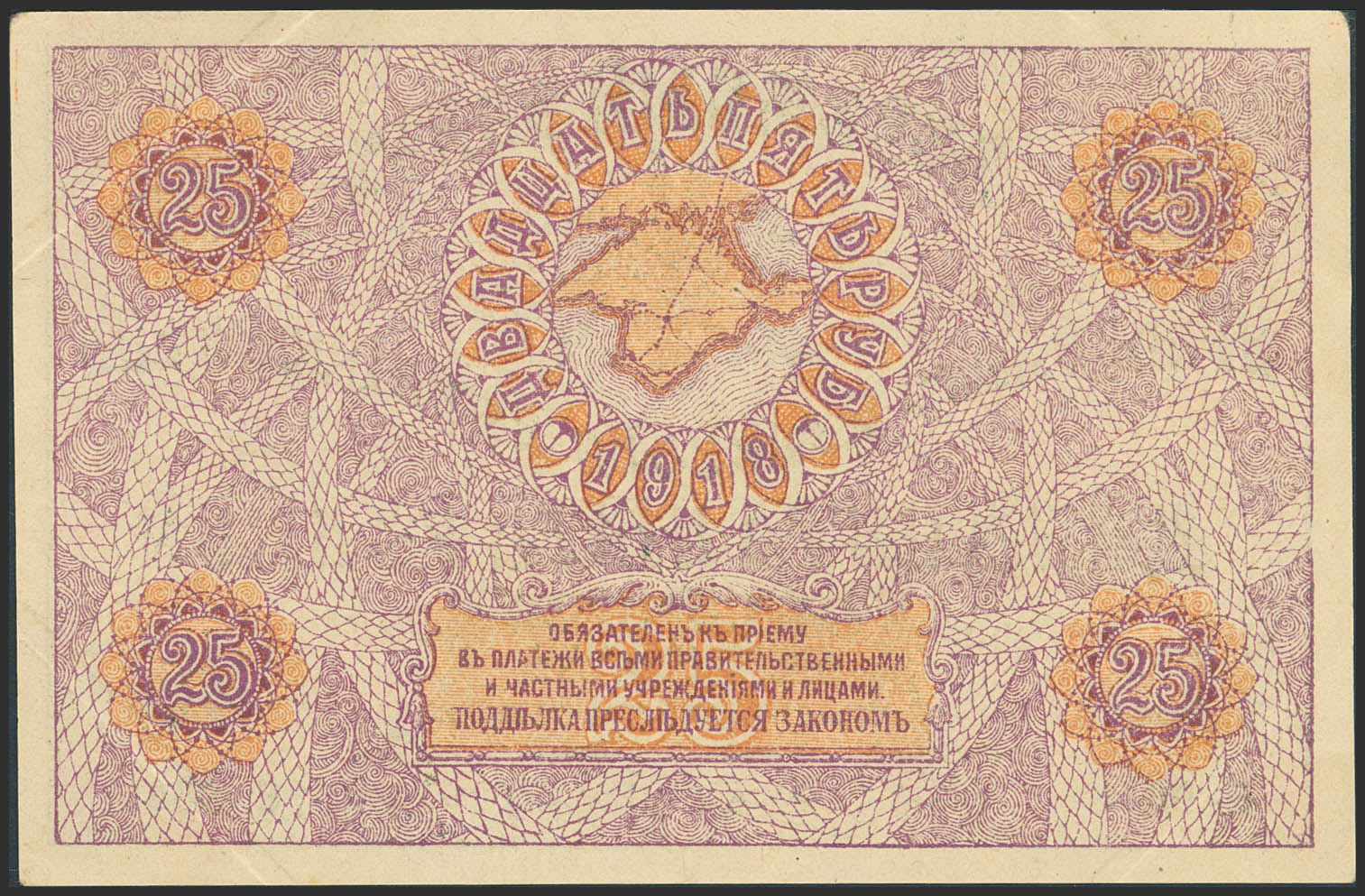 RUSSIA-UKRAINE AND CRIMEA. 25 Rubles. 1918. Crimea Territorial Treasury. (Pick: S372b). Less than Uncirculated.