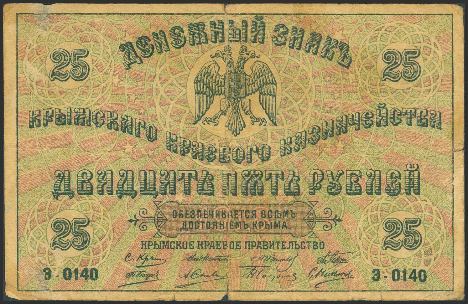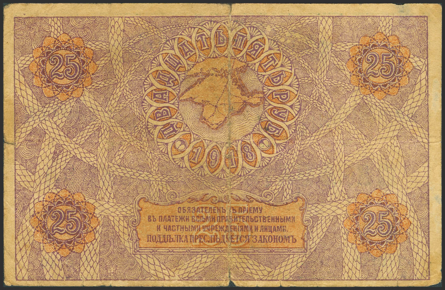 RUSSIA-UKRAINE AND CRIMEA. 25 Rubles. 1918. Crimea Territorial Treasury. (Pick: S372b). Tears. Very Fine.