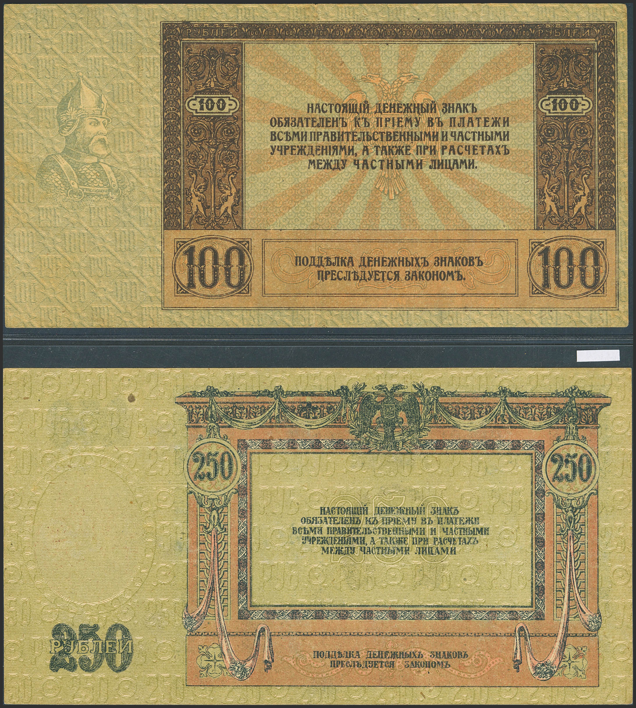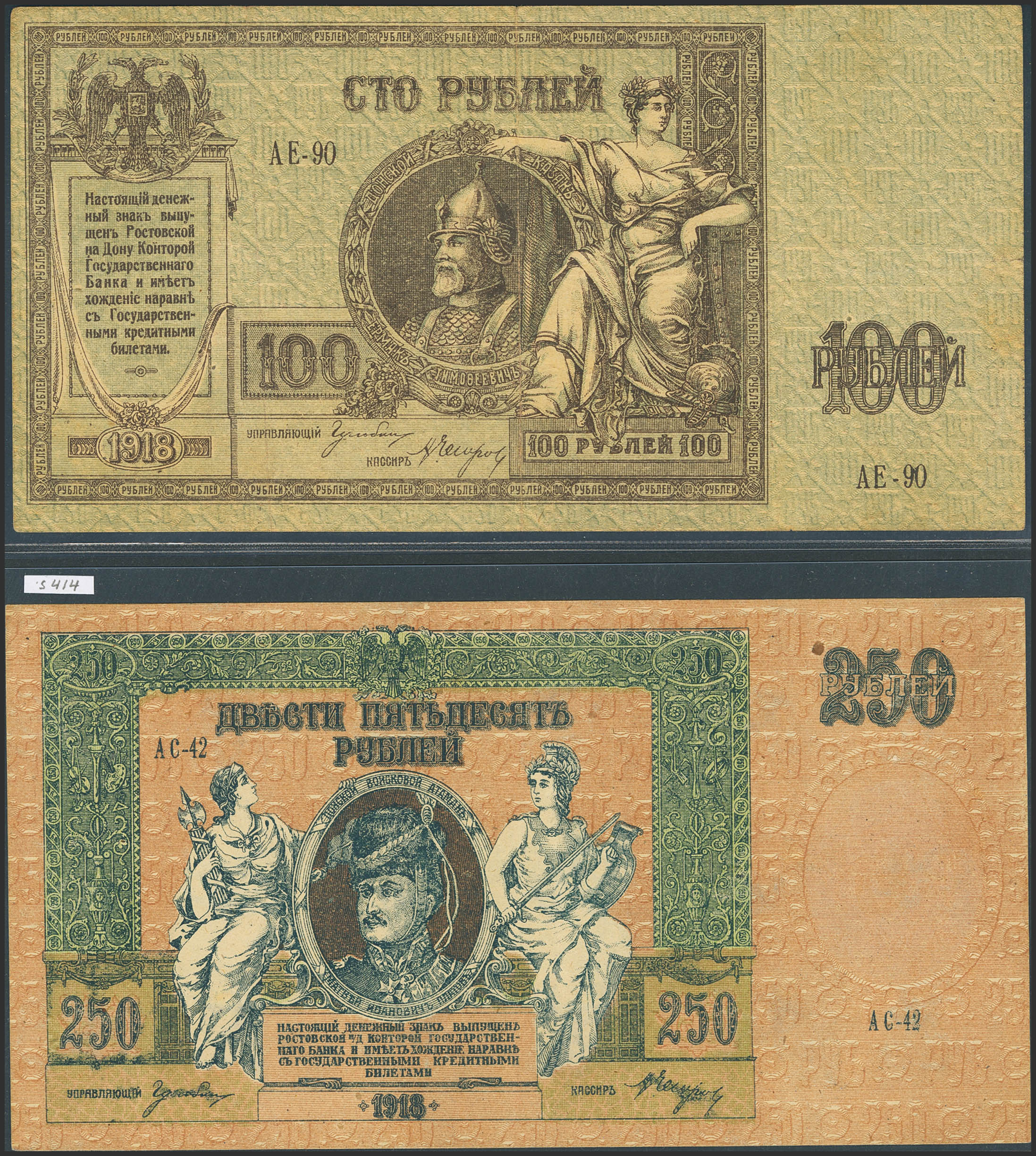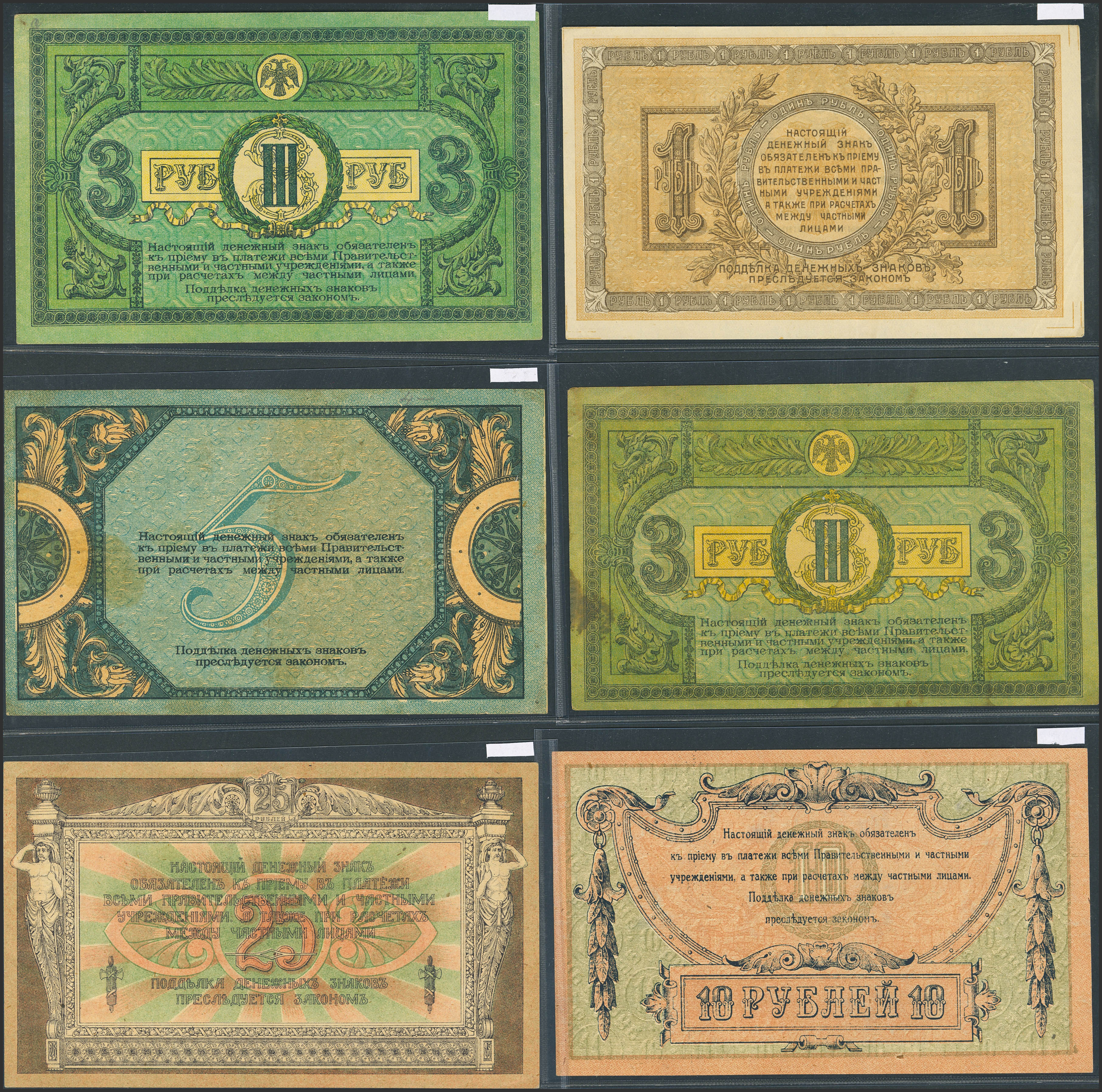 RUSSIA-SOUTH. Lot of 8 notes from 1 at 250 Rubles. 1918. State Bank. (Pick: S408a, 409a(2), 410a, 411b, 412a, S413, S414). Extremely Fine (2), Less than Uncirculated (3), More than Very Fine (2) and More than Extremely Fine (1).
