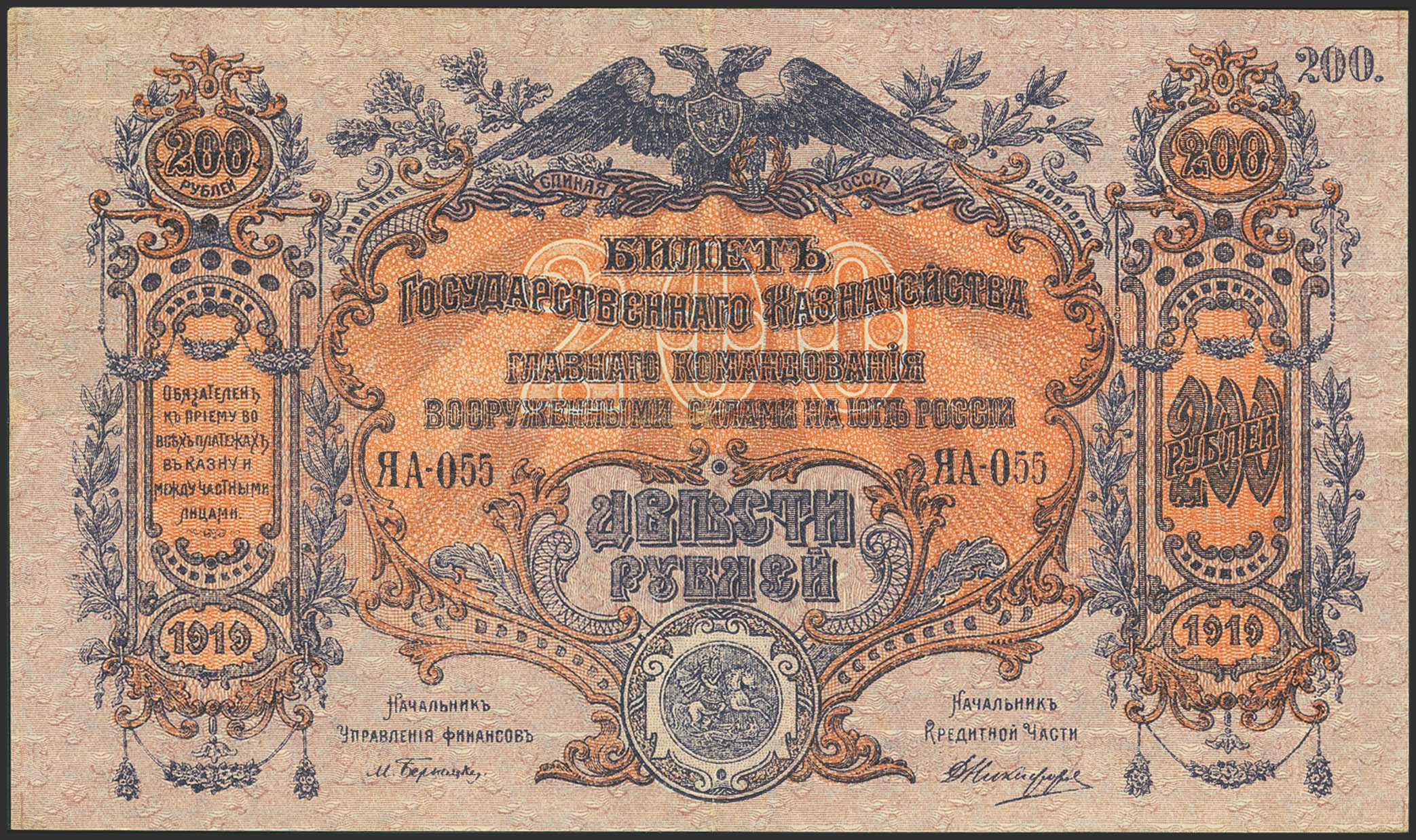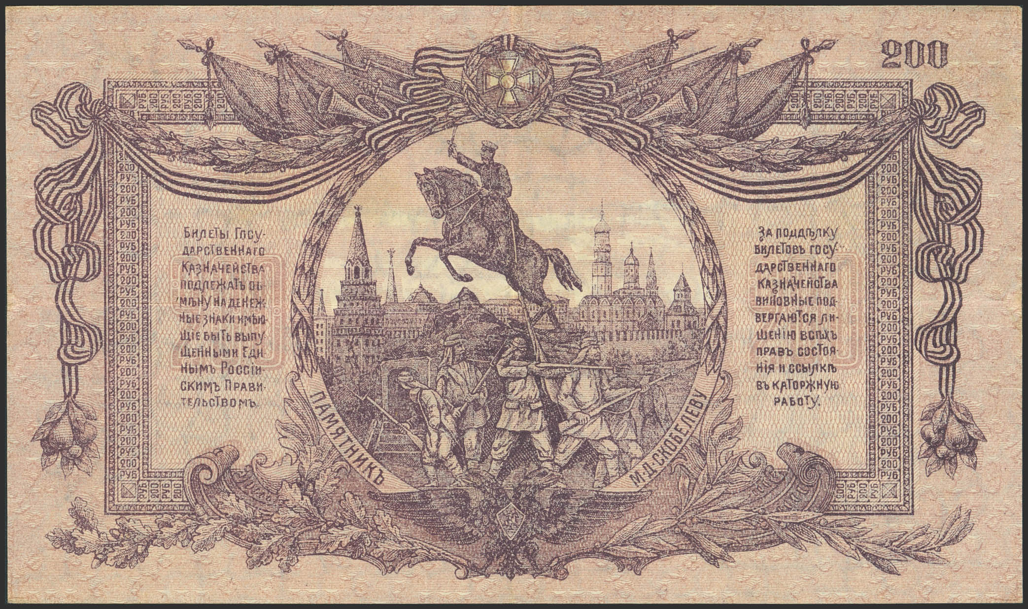 RUSSIA-SOUTH. 200 Rubley. 1919. Gosudarstvenniy Bank. (Pick: S423). Extremely Fine.