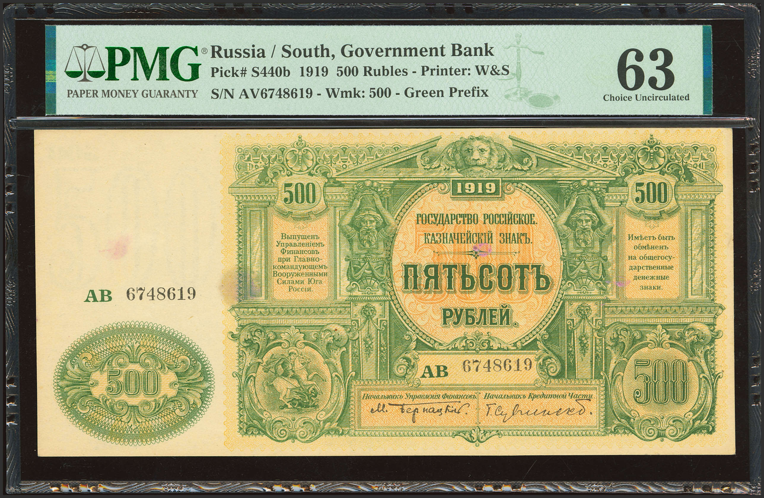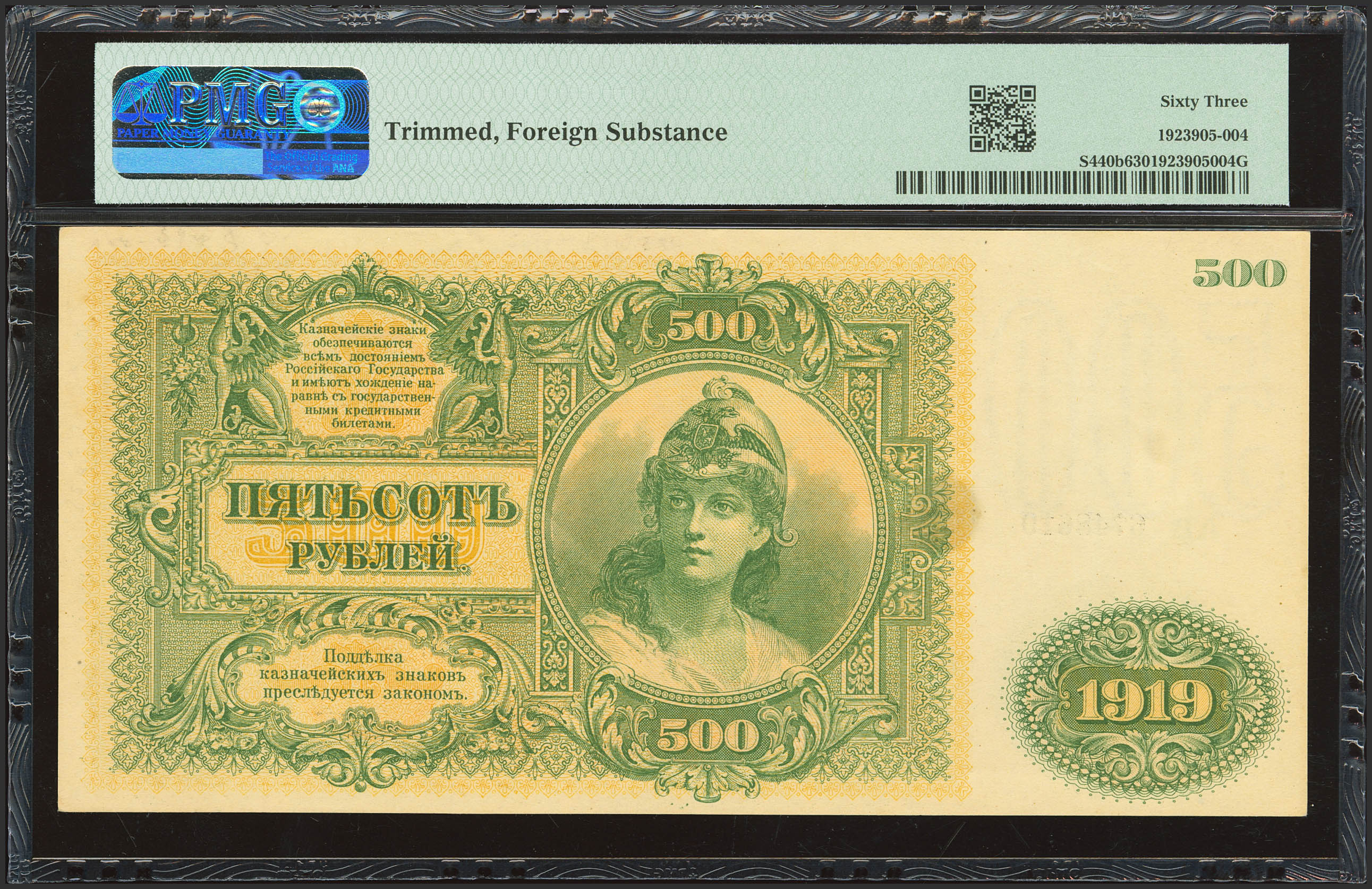 RUSSIA-SOUTH. 500 Rubley. 1919. Gosudarstvo Rossiskoye. (Pick: S440b). PMG63 (trimmed, foreign substance).
