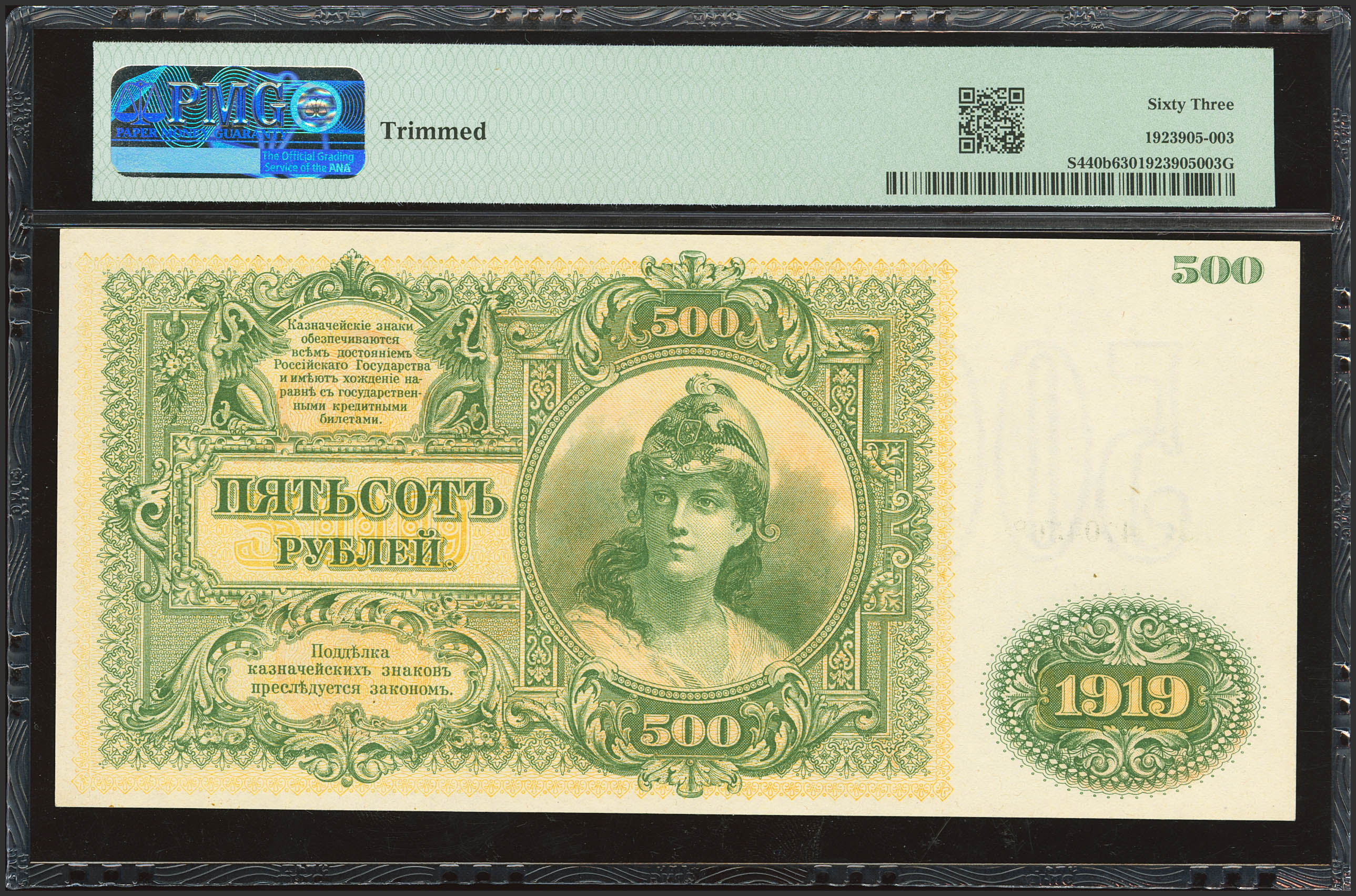 RUSSIA-SOUTH. 500 Rubley. 1919. Gosudarstvo Rossiskoye. (Pick: S440b). PMG63 (trimmed).