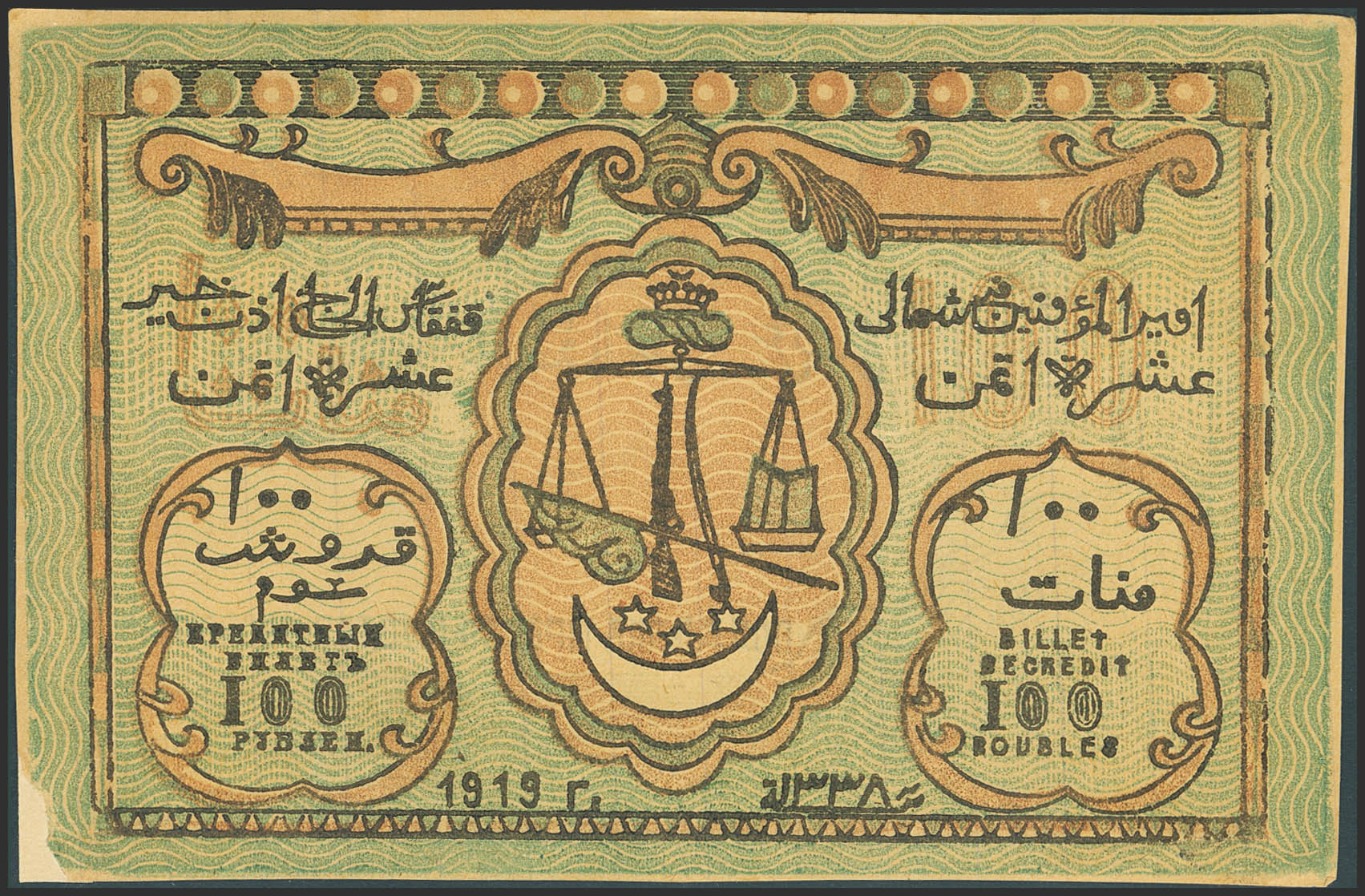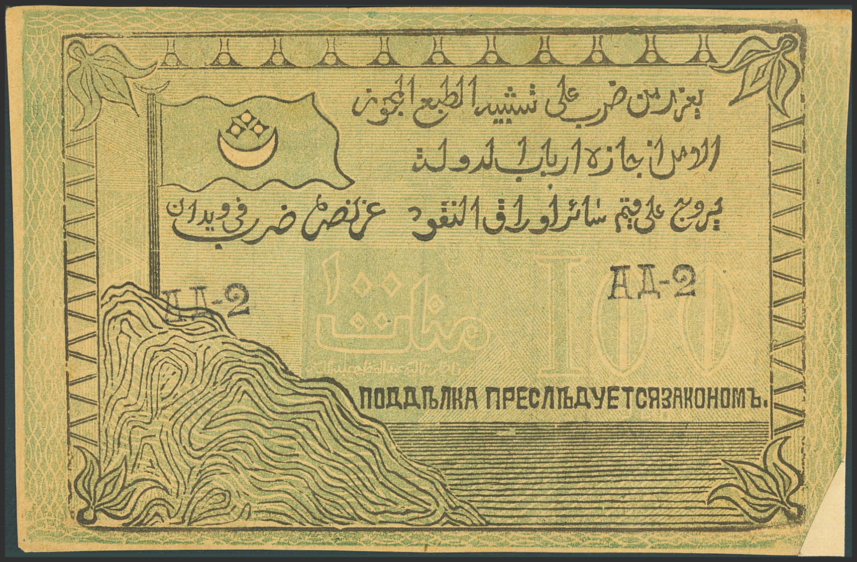 RUSSIA-NORTH CAUCASUS. 100 Rubles. 1919. Treasury. (Pick: S474b). Adhesive paper added missing corner. Almost Uncirculated.
