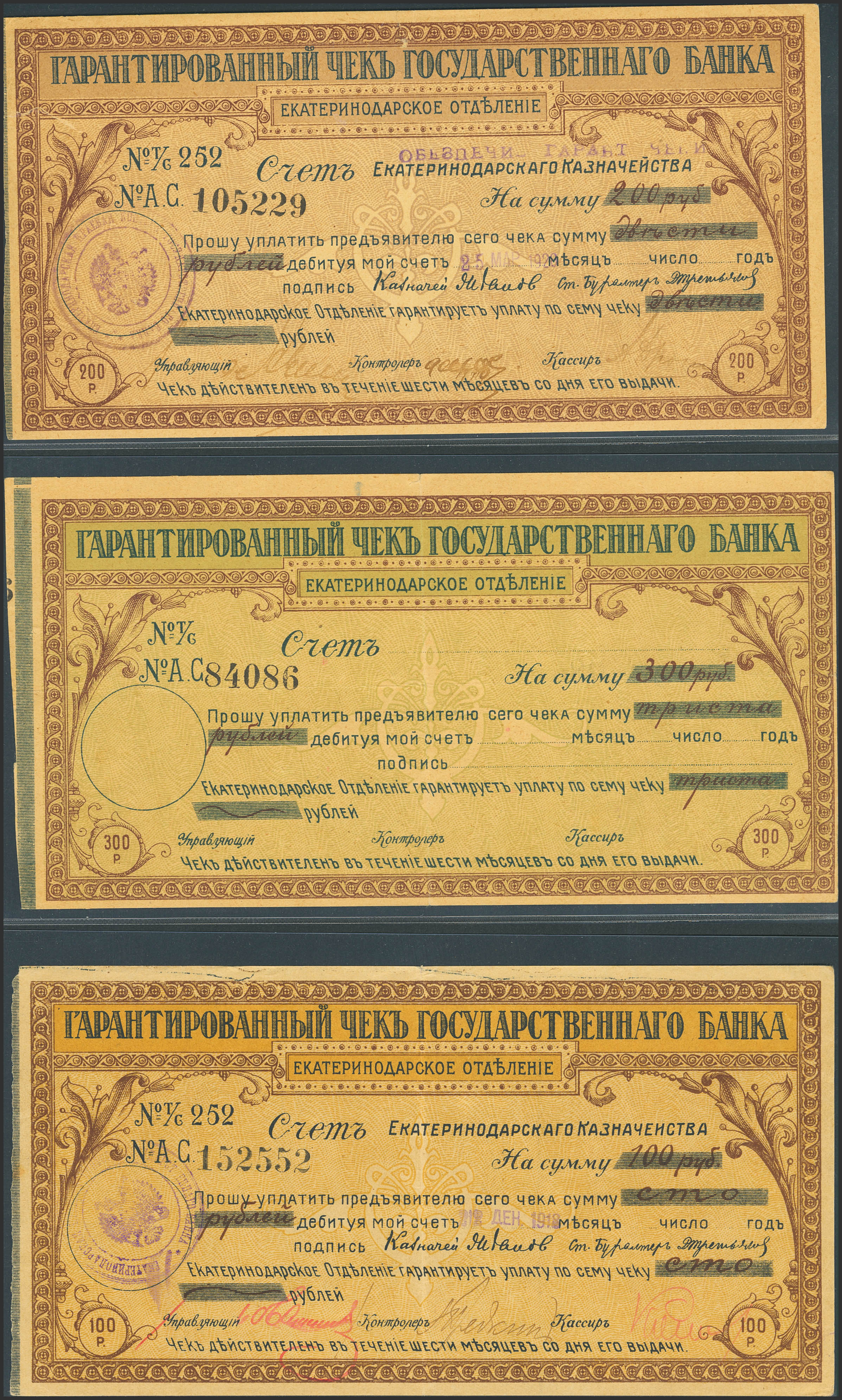 RUSSIA-NORTH CAUCASUS. 100 Rubley. 1918. Gosudarstvenniy Bank-Ekaterinodar. (Pick: S498B, S498Ca, 498Da). More than Extremely Fine.