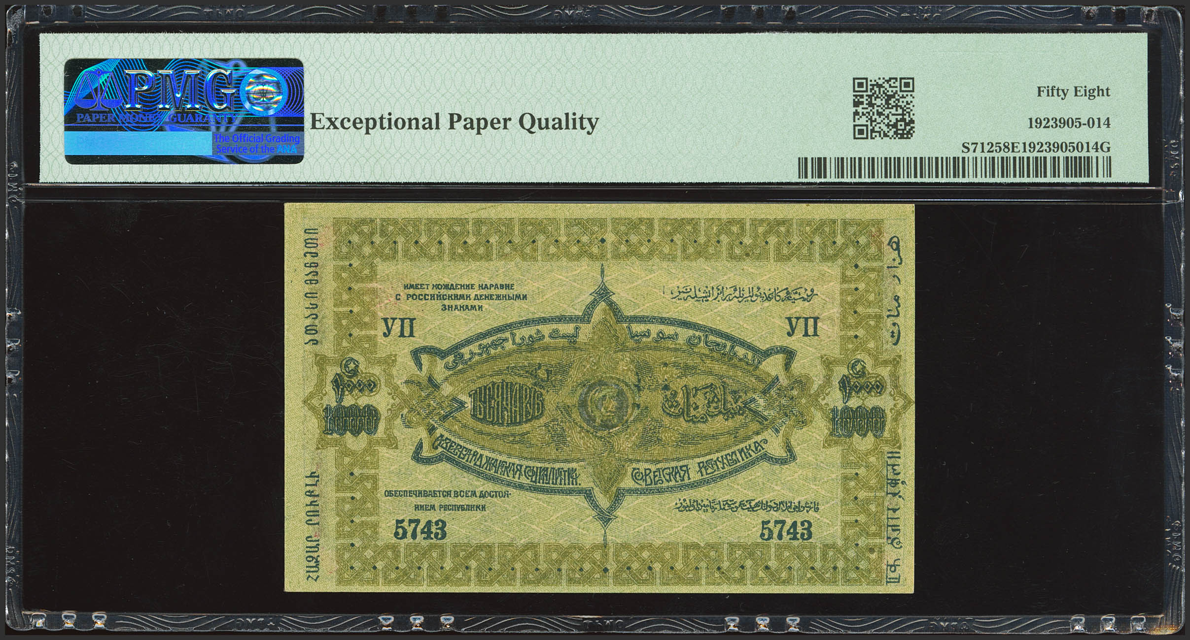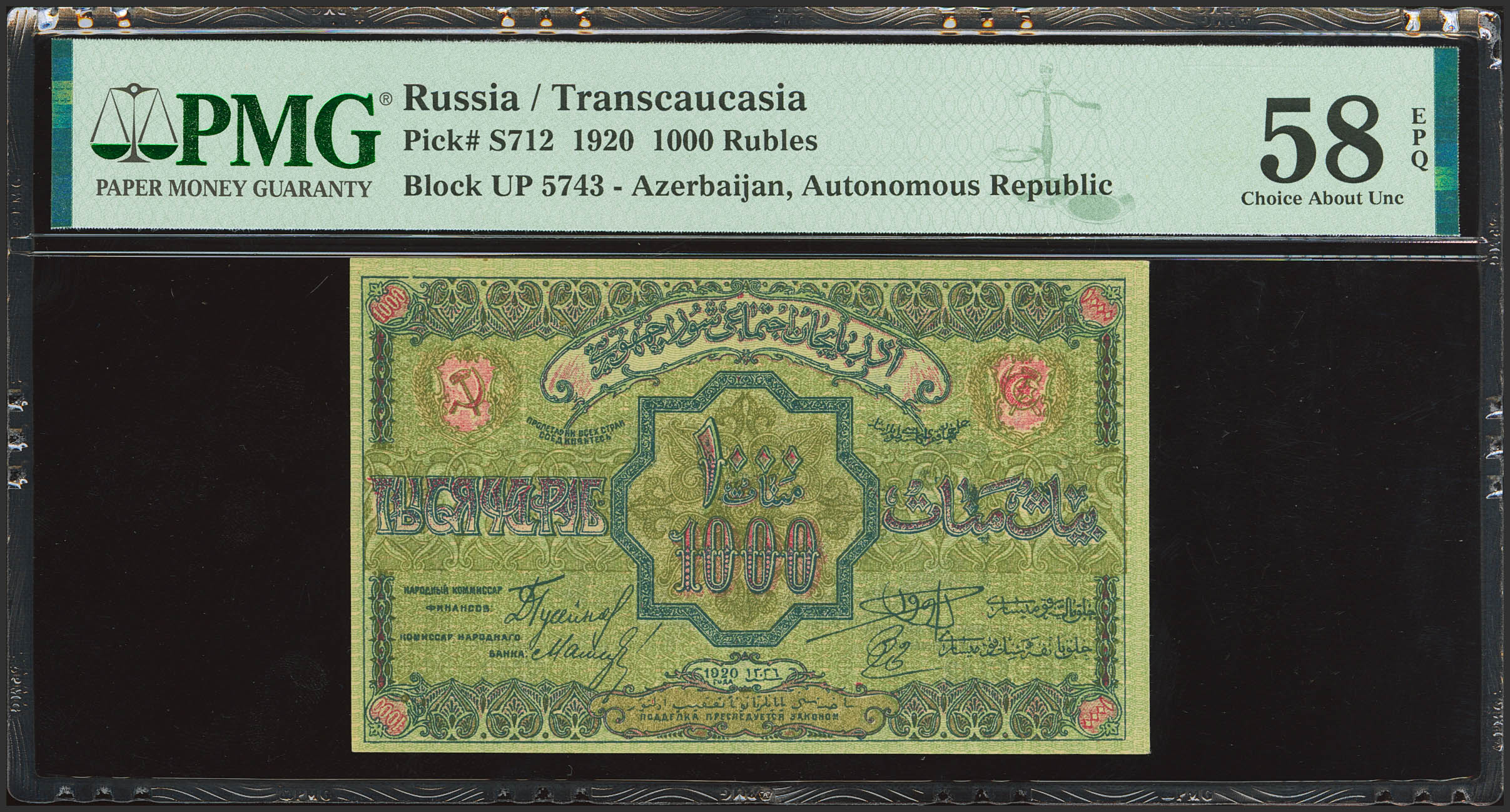 RUSSIA-TRANSCAUCASIA. 1000 Rubley. (1920ca). Socialist Soviet Republic of Azerbaijan. (Pick: S712). PMG58EPQ.
