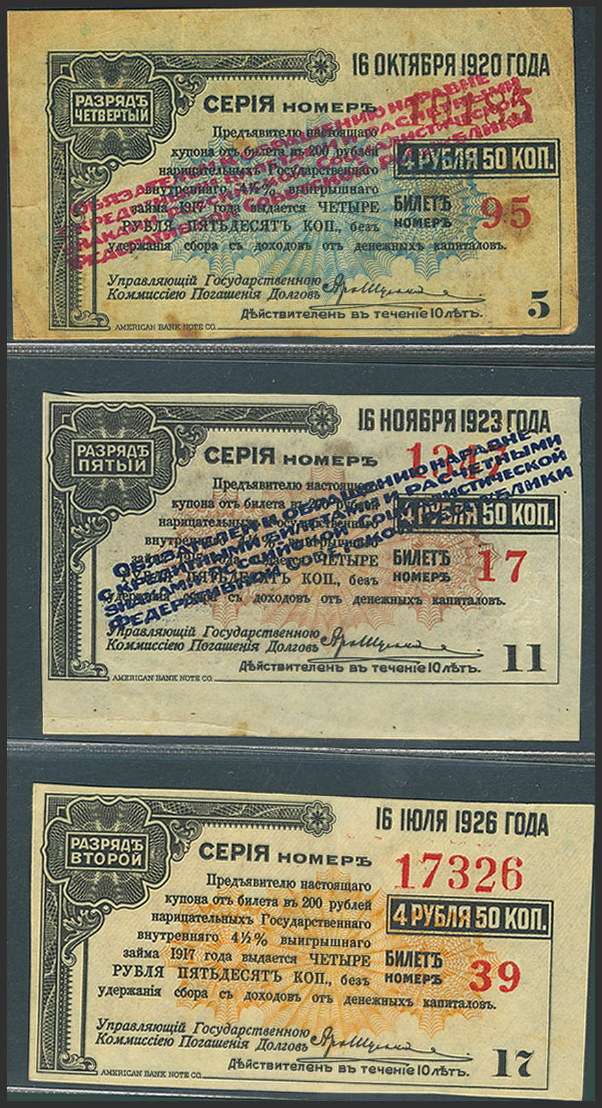 RUSSIA-SIBERIA AND URALS. Lot of 3 notes of 4´50 Rubles. 1917. State Bank, Irkutsk Branch and Siberian Revolution Committee. (Pick: S892, S901, S904). Almost Uncircularted (2) and More than Very Fine (1).
