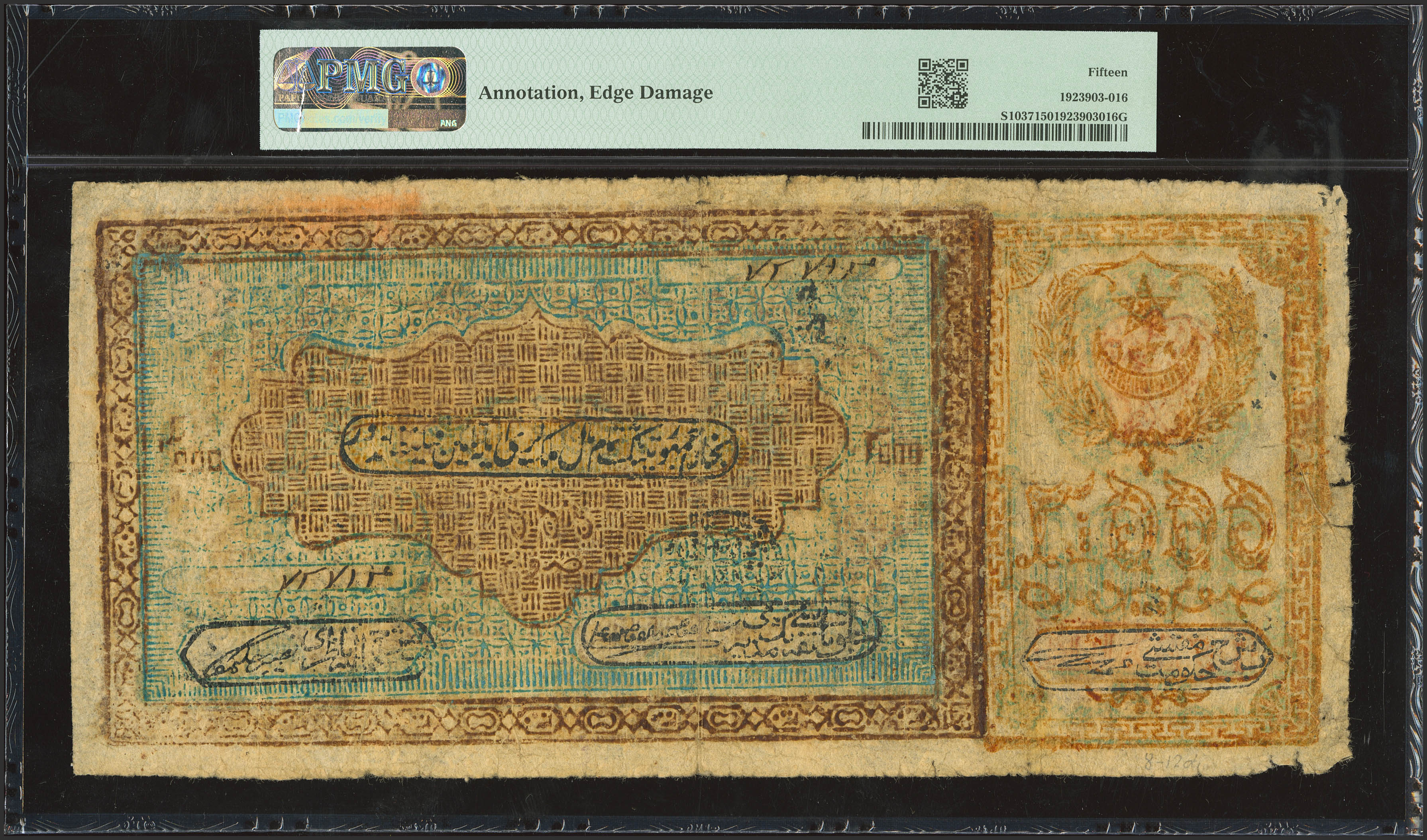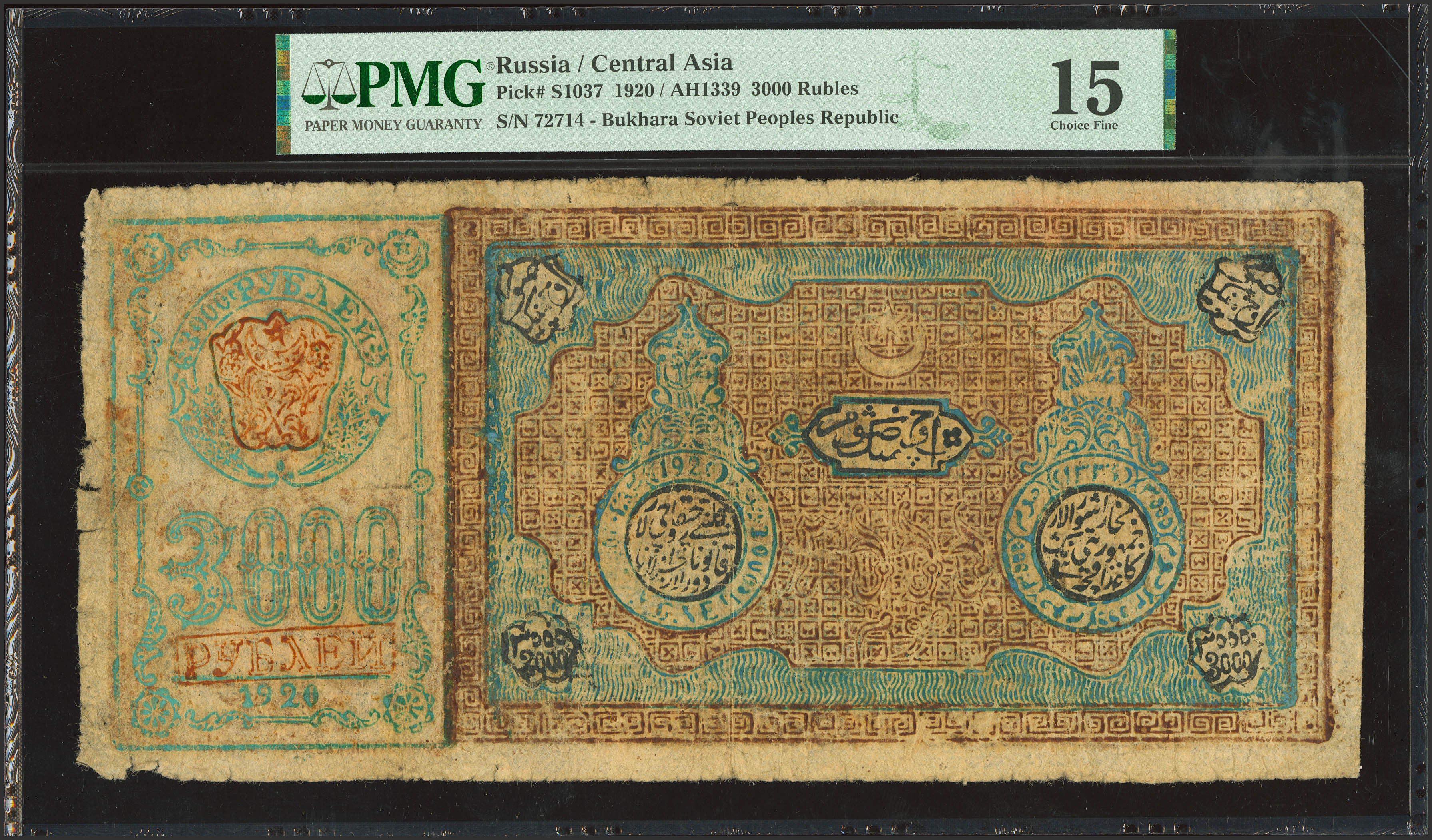 RUSSIA-CENTRAL ASIA. 3000 Rubley. 1920. Treasury. Bukhara Peoples Republic. (Pick: S1037). PMG15 (annotation, edge damage).