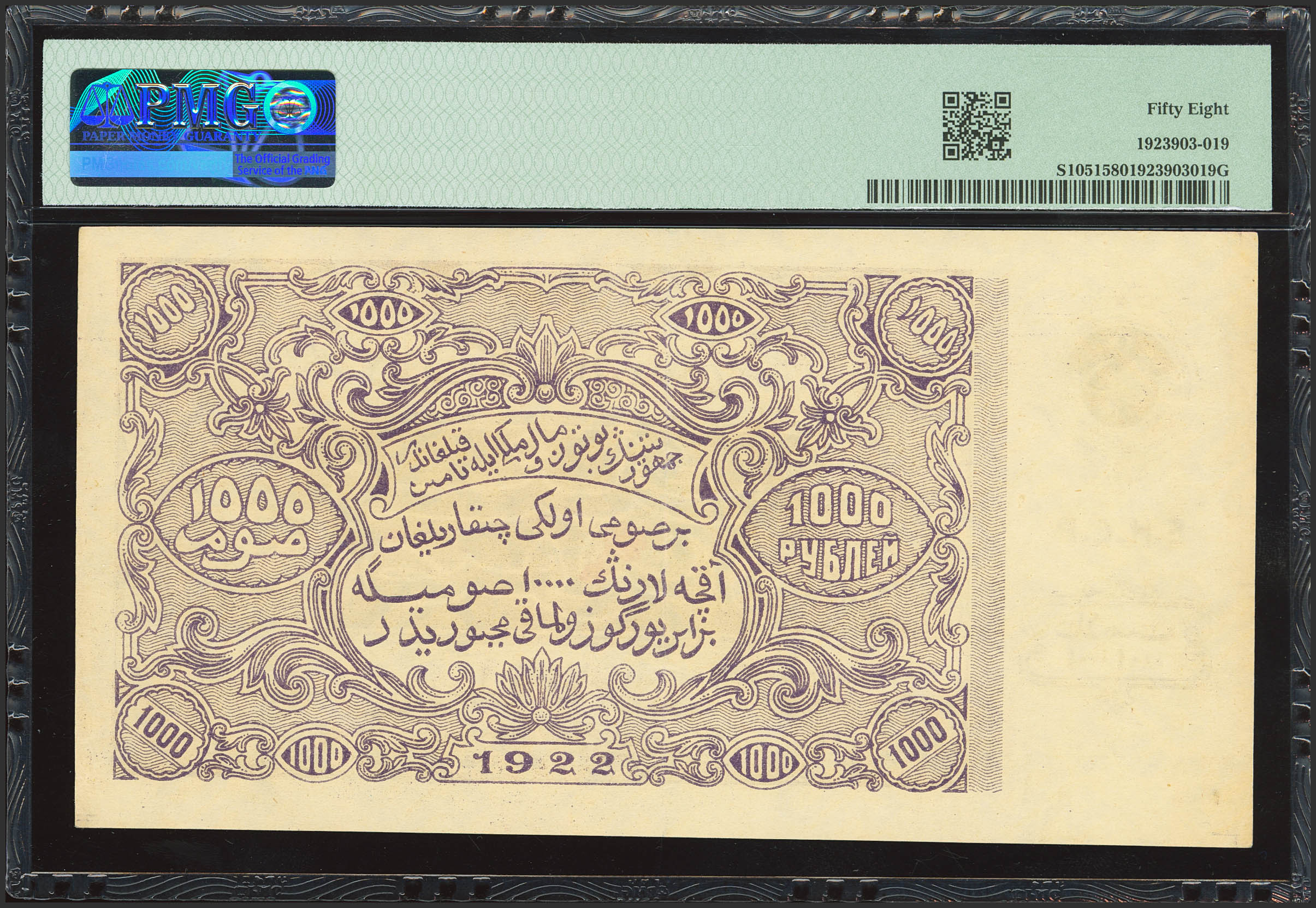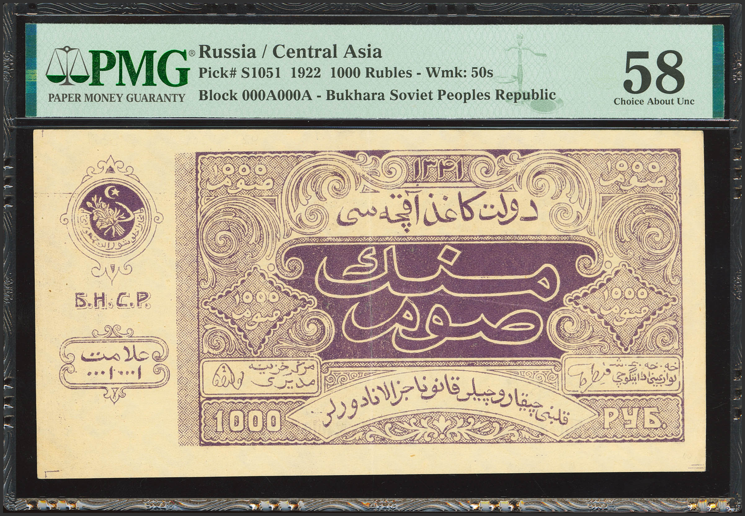 RUSSIA-CENTRAL ASIA. 1000 Rubles. 1922. Treasury. Bukhara Peoples Republic. (Pick: S1051). PMG58.