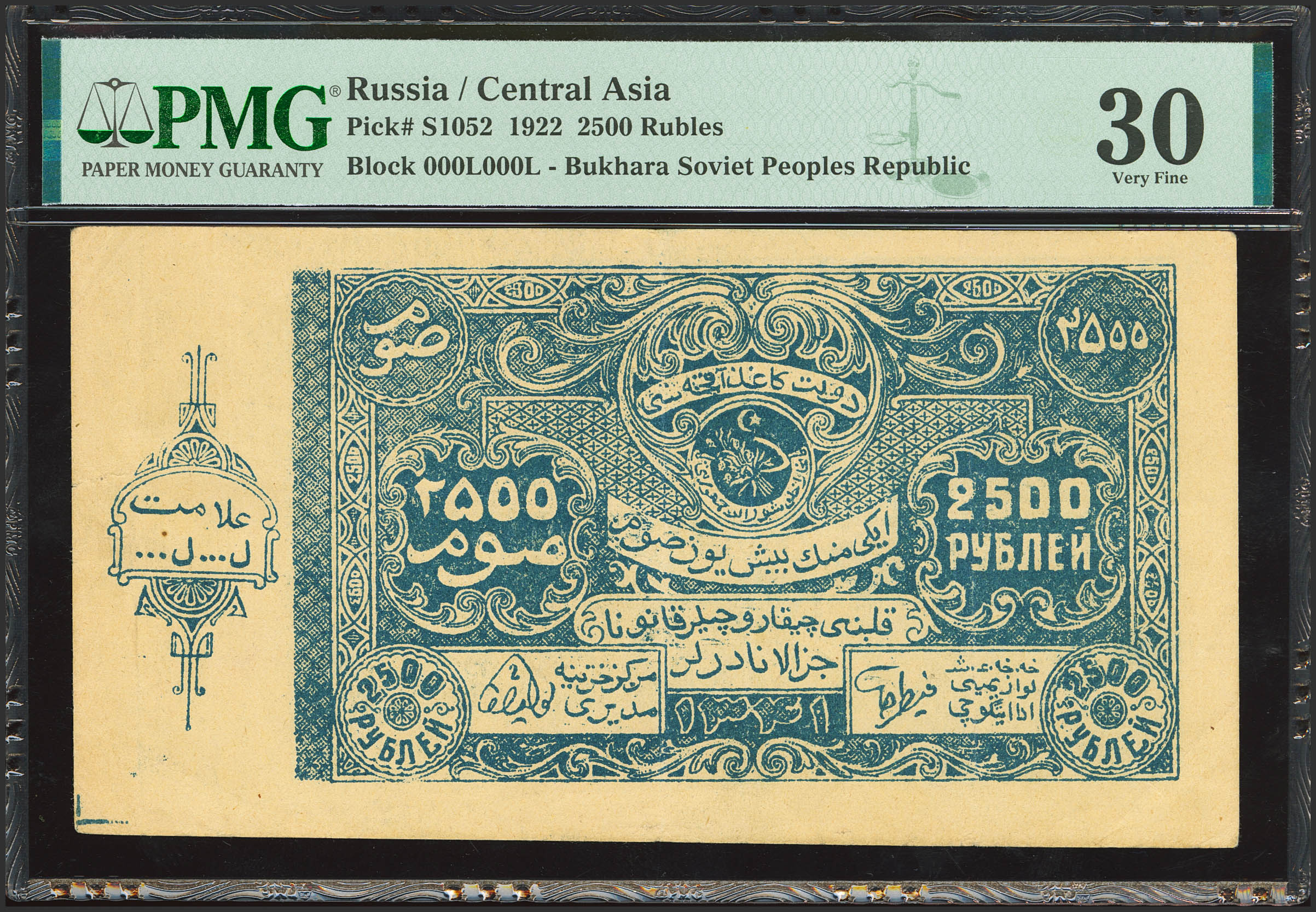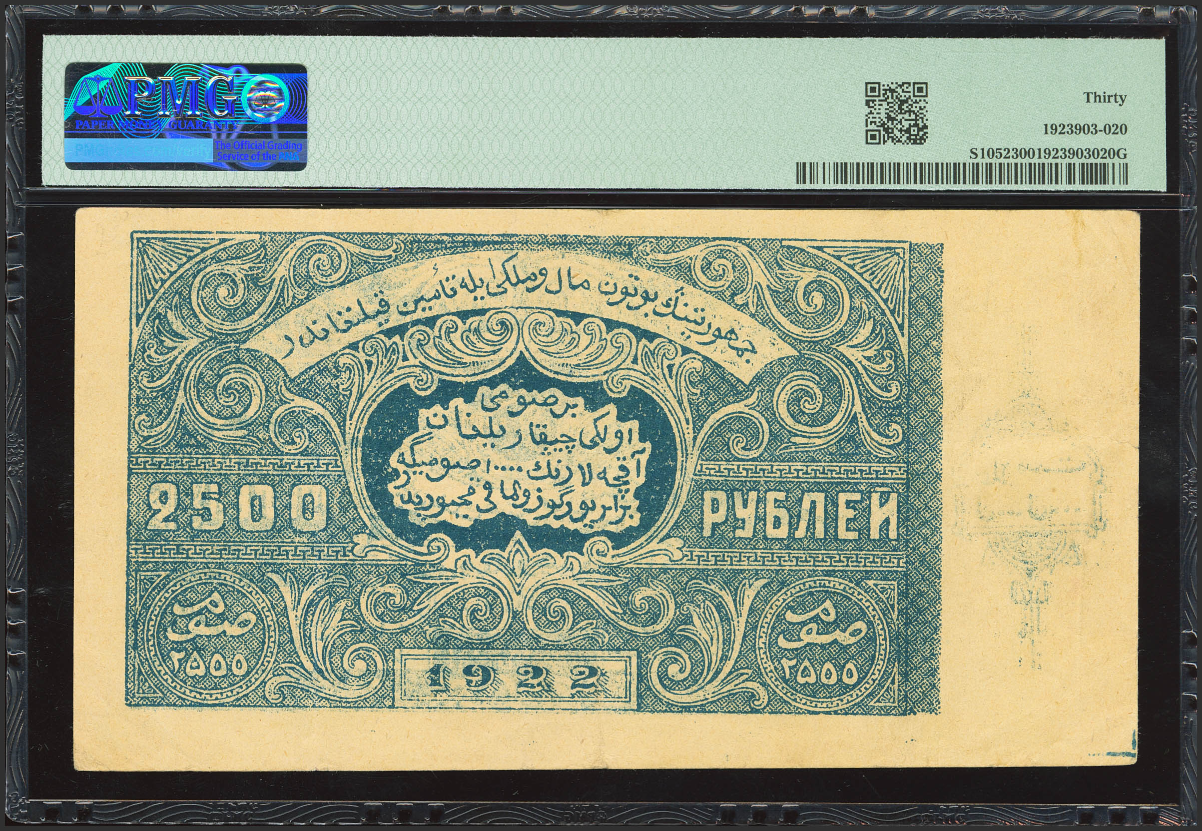 RUSSIA-CENTRAL ASIA. 2500 Rubles. 1922. Treasury. Bukhara Peoples Republic. (Pick: S1052). PMG30.