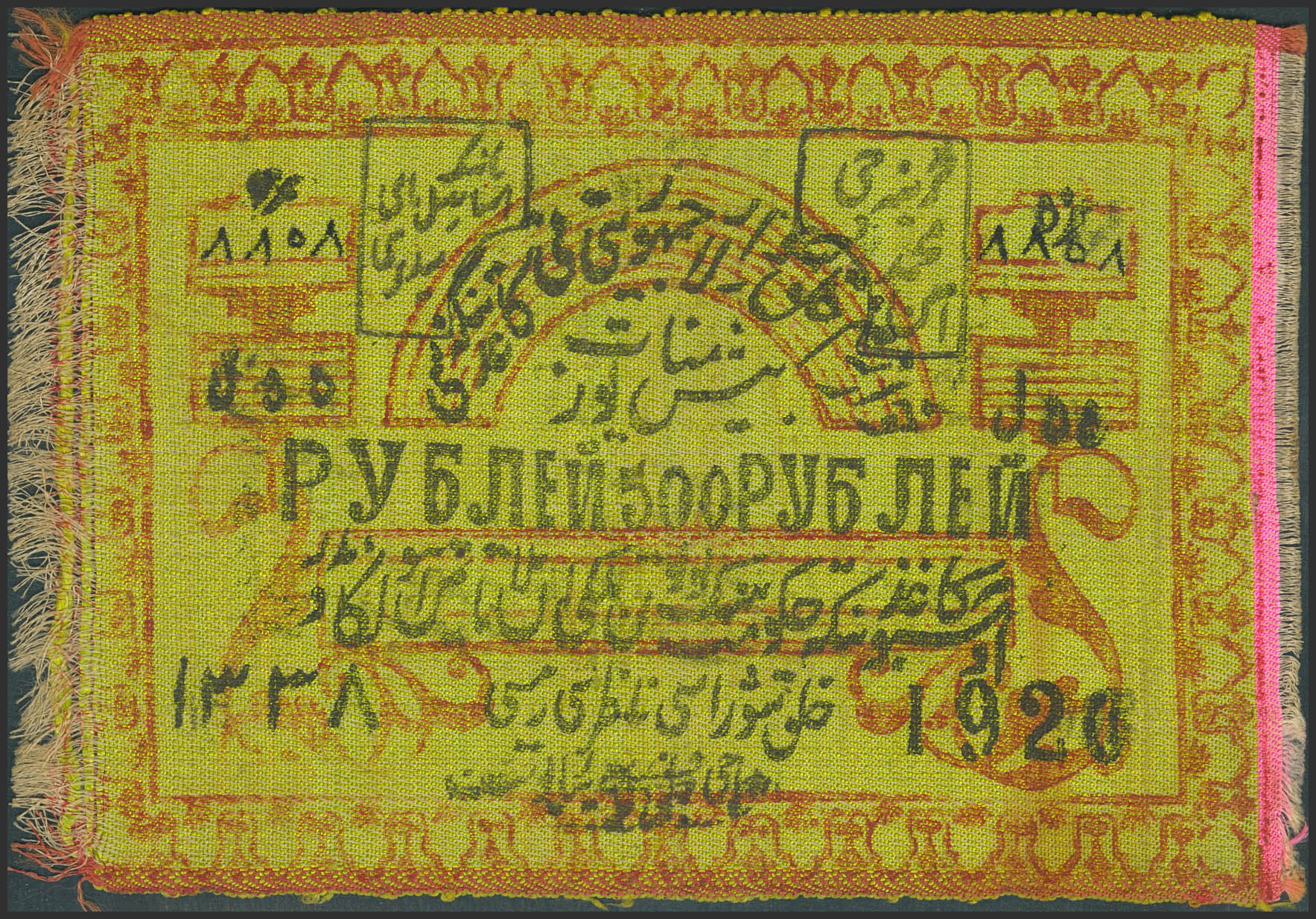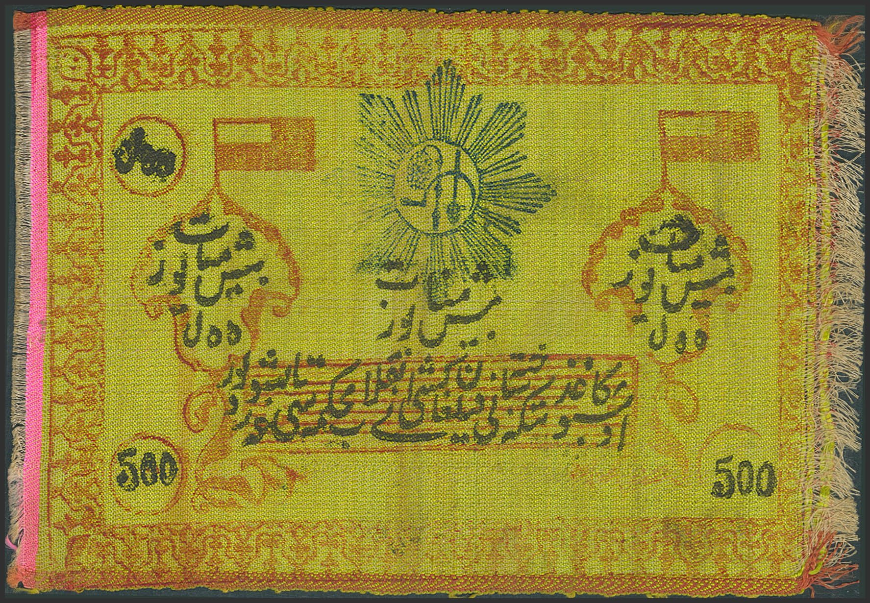RUSSIA-CENTRAL ASIA. 500 Rubles. 1920. Treasury. Made of fabric. (Pick: S1077). About Uncirculated.