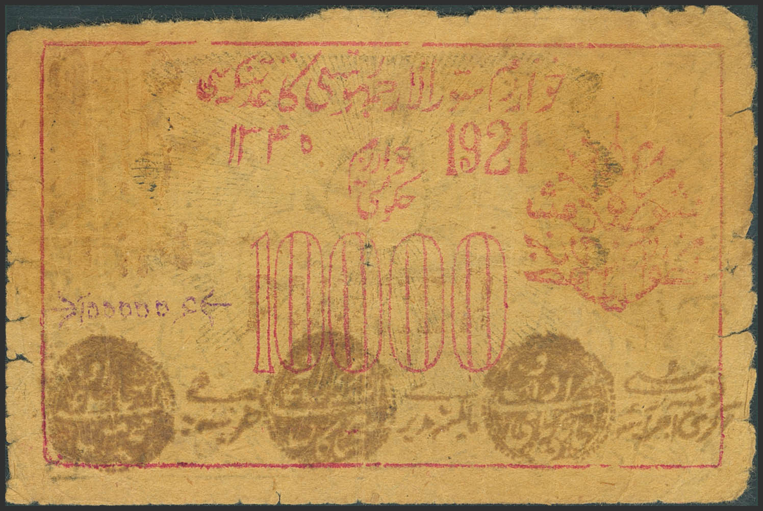 RUSSIA-CENTRAL ASIA. 10000 Rubles. 1921. Treasury. Khorezm Soviet Peoples Republic. (Pick: S1098). Very Good.