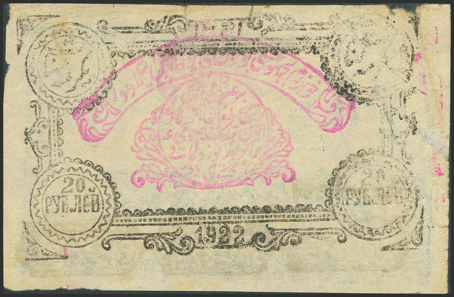 RUSSIA-CENTRAL ASIA. 20 Rubles. 1922. Treasury. Khorezm Soviet Peoples Republic. (Pick: S1108). Extremely Fine.