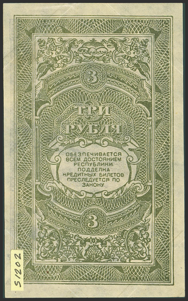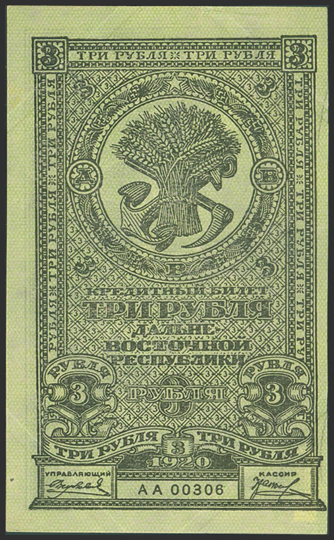 RUSSIA-EAST SIBERIA. 3 Rubles. 1920. Treasury. Far eastern Republic. (Pick: S1202). Almost Uncirculated.