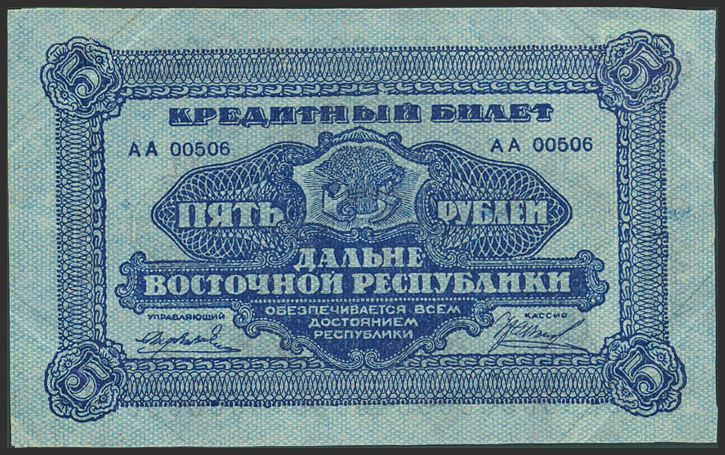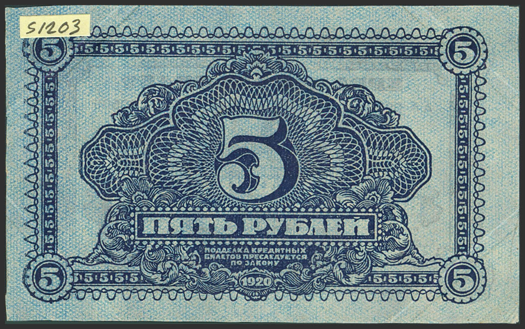 RUSSIA-EAST SIBERIA. 5 Rubles. 1920. Treasury. Far eastern Republic. (Pick: S1203). Almost Uncirculated.