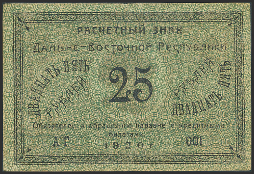 RUSSIA-EAST SIBERIA. 25 Rubles. 1920. Treasury. Far eastern Republic. (Pick: S1205). Extremely Fine.