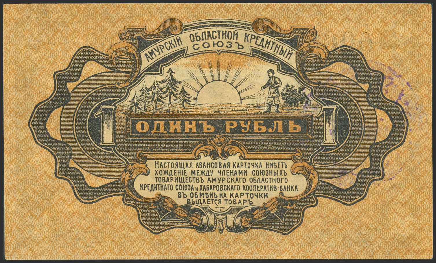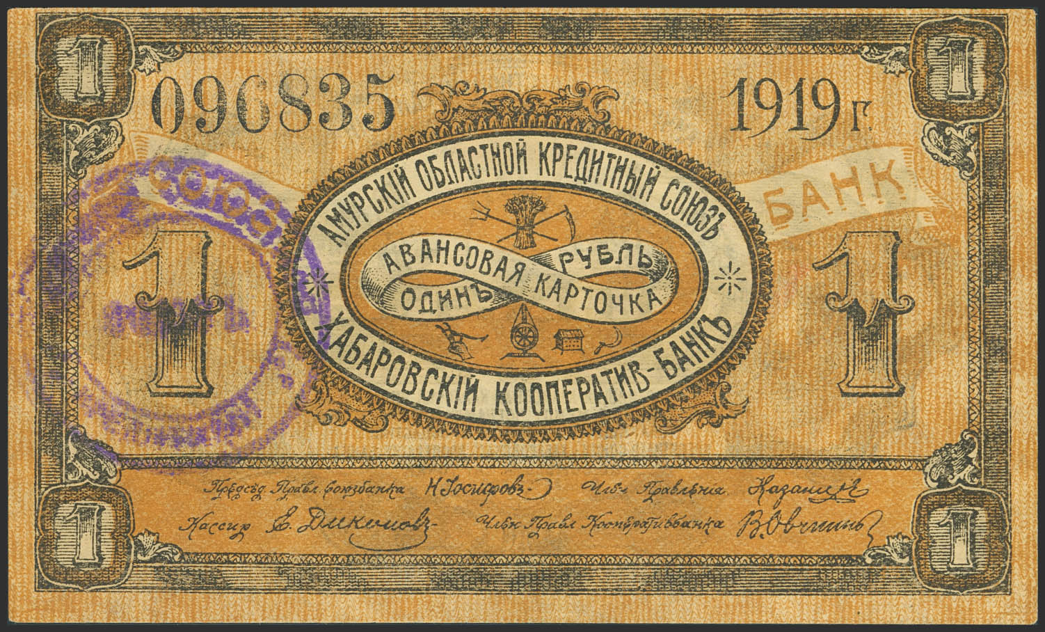 RUSSIA-EAST SIBERIA. 1 Ruble. 1919. Amur Regional Credit Union. Khabarovsk Cooperative Bank. (Pick: S1224Aa). Almost Uncirculated.