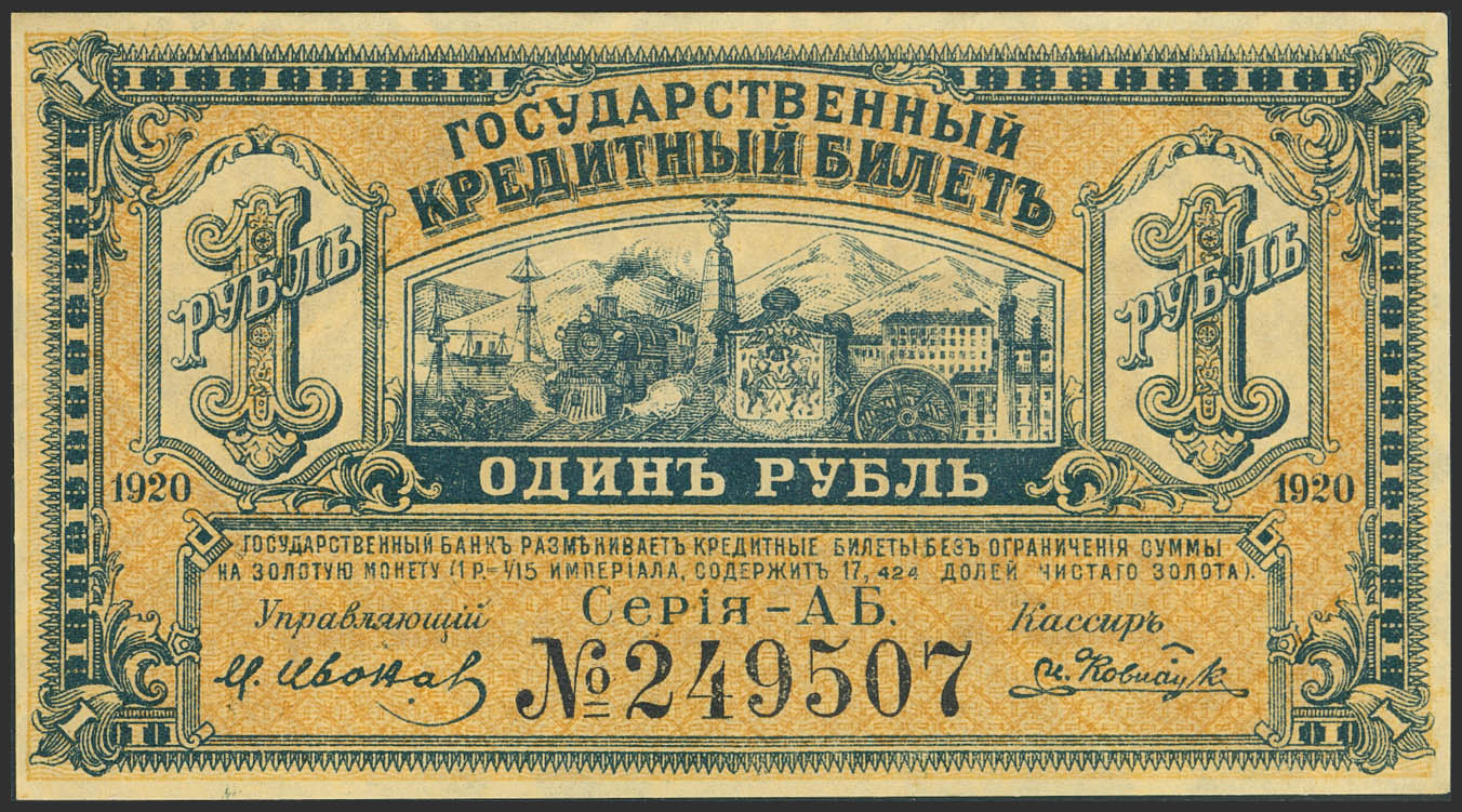 RUSSIA-EAST SIBERIA. 1 Ruble. 1920. Far east Provisional Government, primorye Region. (Pick: S1245). Almost Uncirculated.