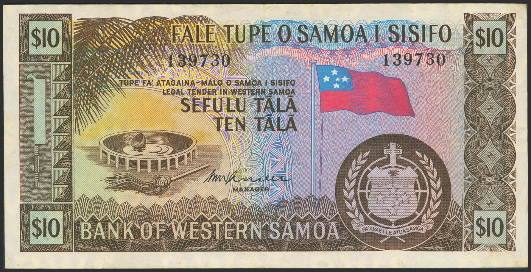 SAMOA. 10 Tala. (1967ca). Bank of Western Samoa. (Pick: 18c). Very Fine.