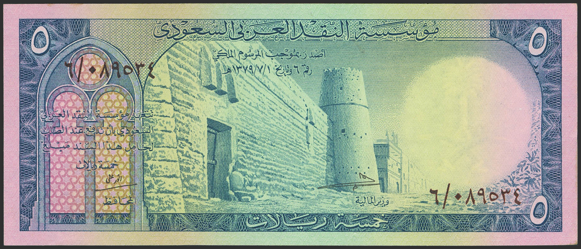 SAUDI ARABIA. 5 Riyals. 1961. Saudi Arabian Monetary Agency. (Pick: 7a). More than Extremely Fine.