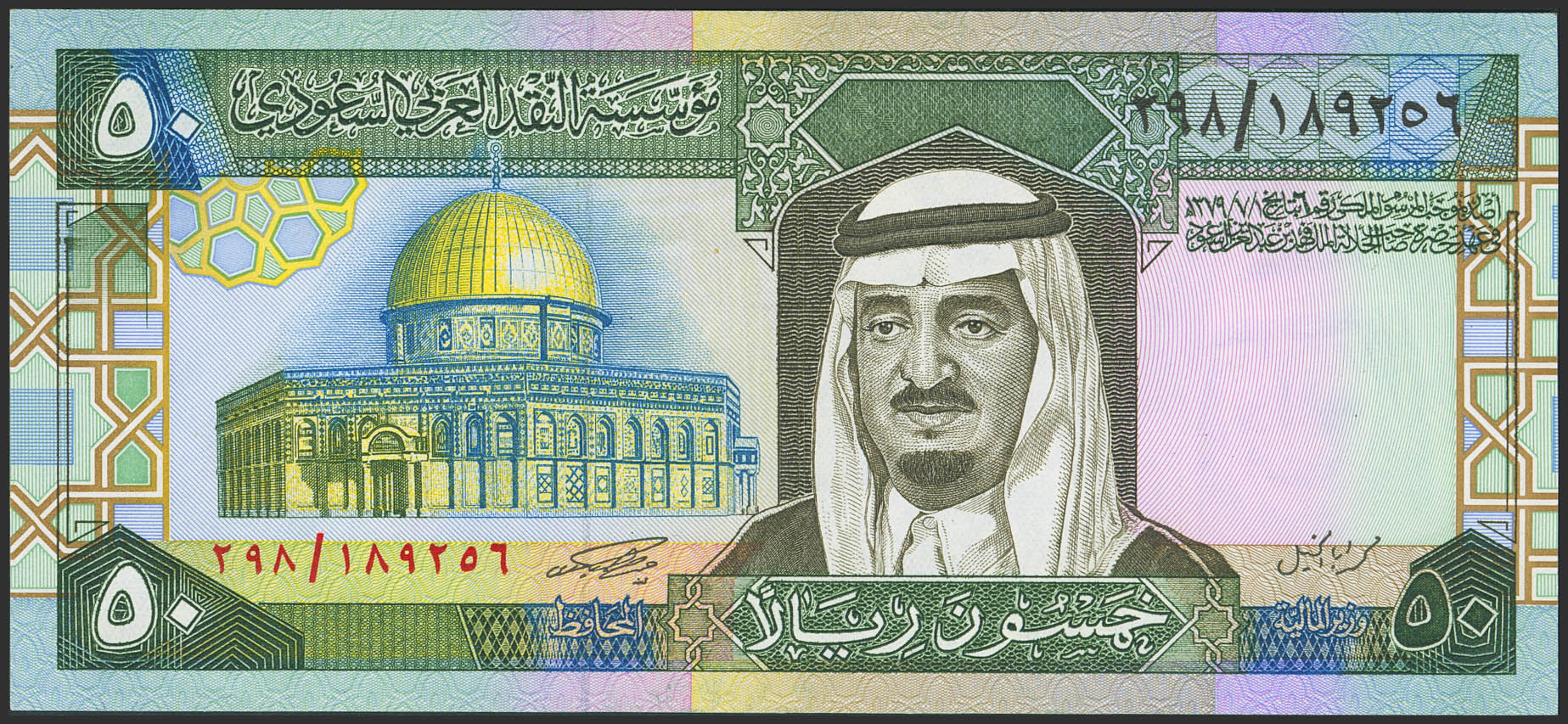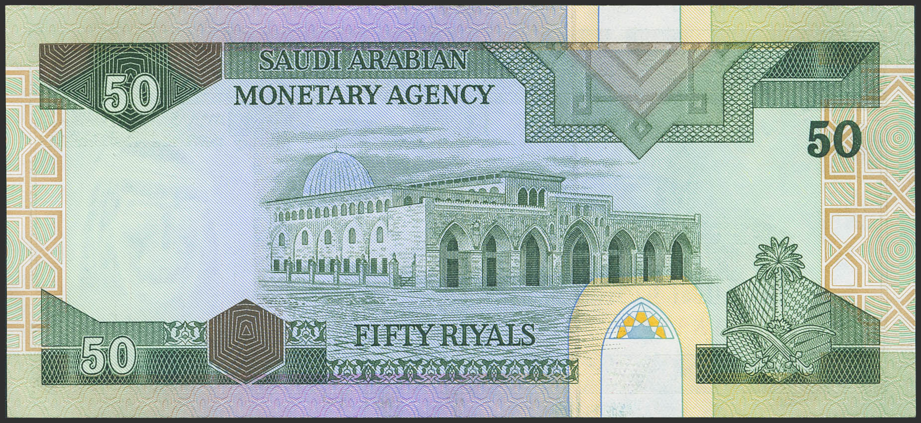 SAUDI ARABIA. 50 Riyals. 1961. Saudi Arabian Monetary Agency. Corrected text. (Pick: 24b). Uncirculated.