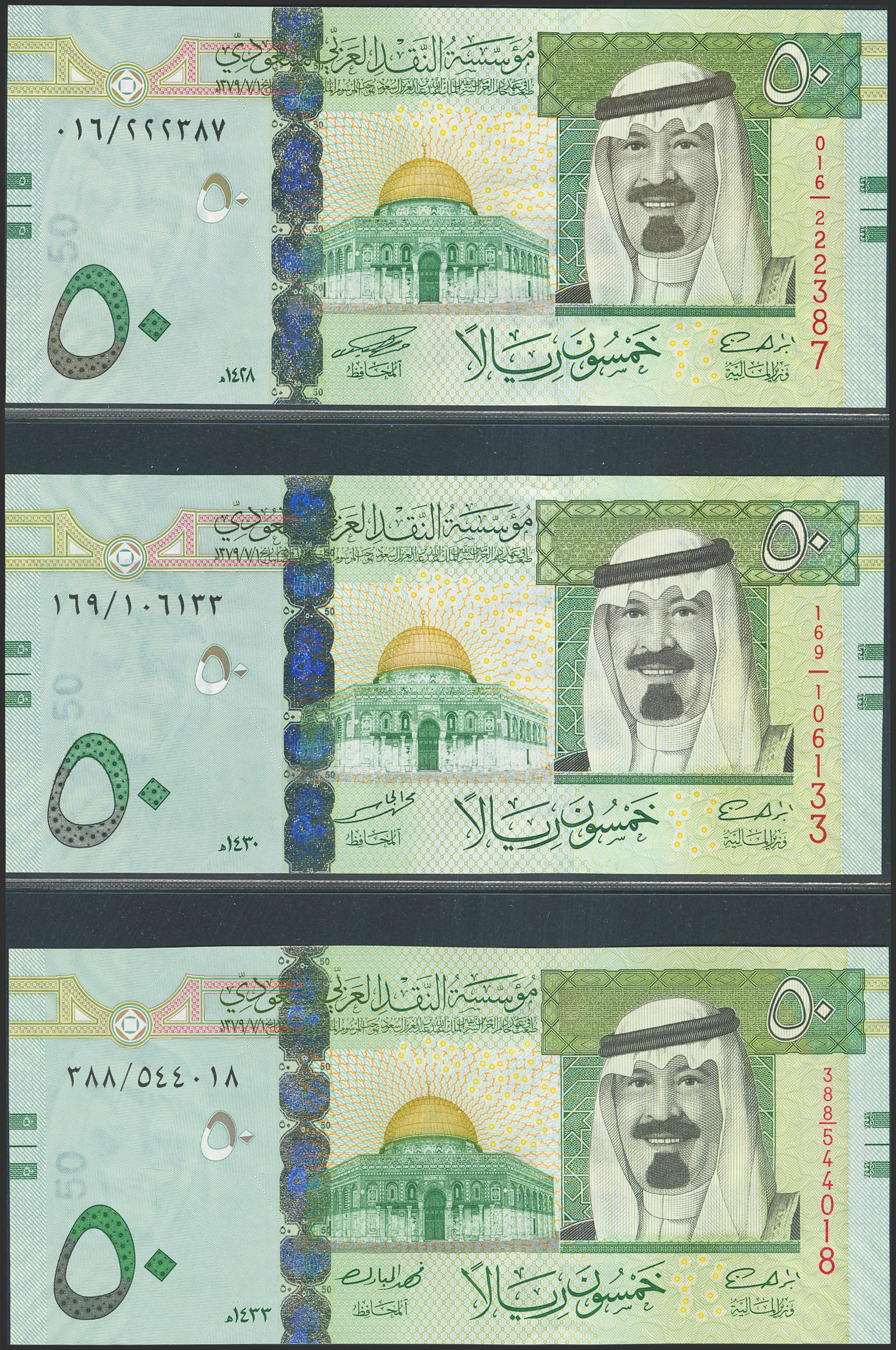 SAUDI ARABIA. Lot of 3 notes of 50 Riyal. (2007ca). Saudi Arabian Monetary Agency. All subreferences of the reference. (Pick: 34a, 34b, 34c). Uncirculated.