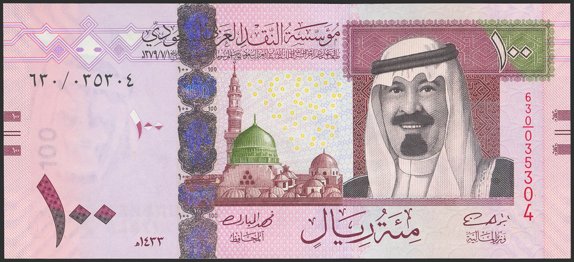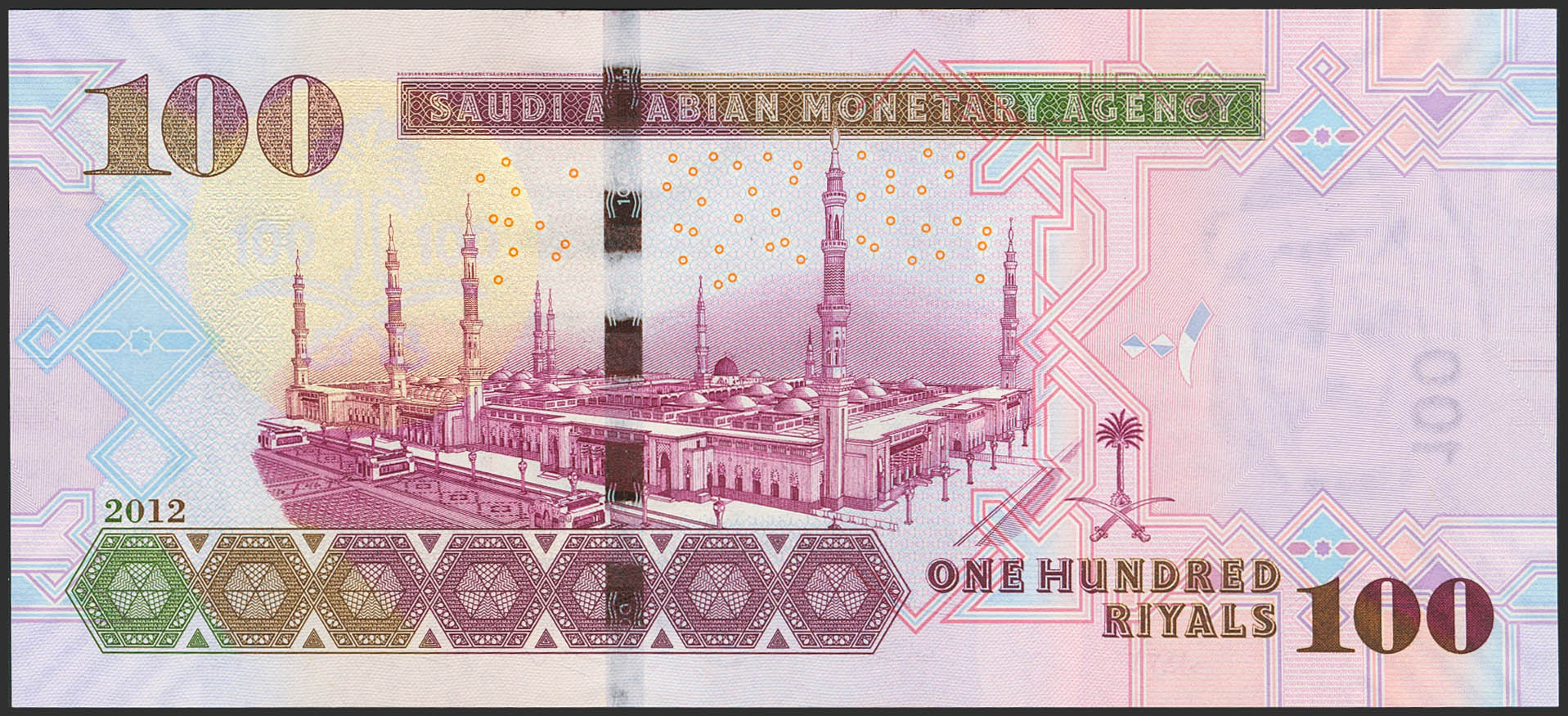 SAUDI ARABIA. 100 Riyals. 2012. Saudi Arabian Monetary Agency. (Pick: 35c). Uncirculated.