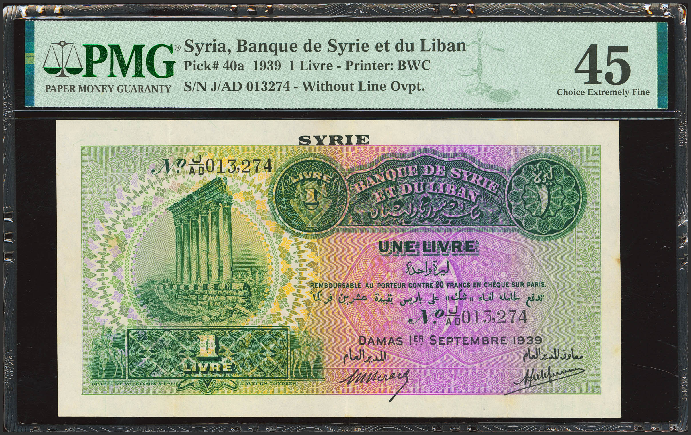 SYRIA. 1 Livre. 1 September 1939. Banque de Syrie et du Liban. (Pick: 40a). PMG45.
