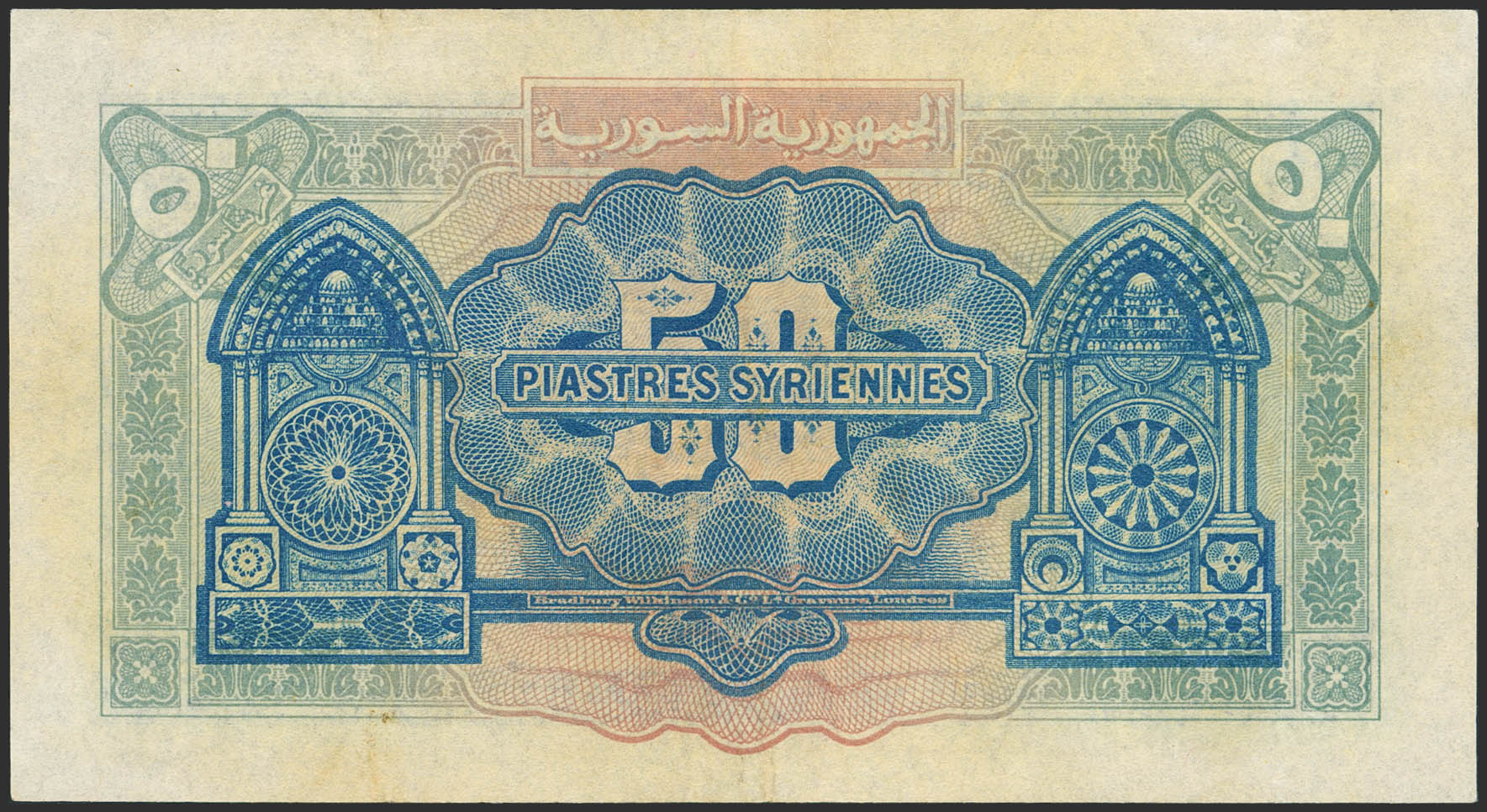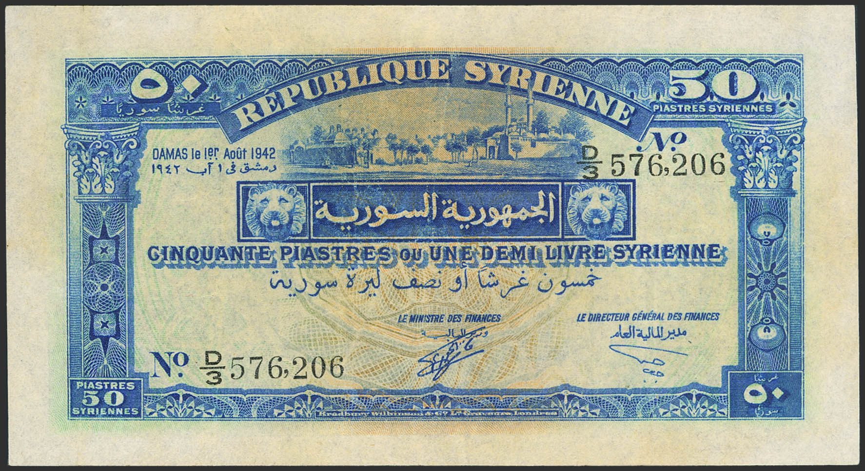SYRIA. 50 Piastres Syriennes. 1 August 1942. Republique Syrienne. (Pick: 52). Washed and flattened. Extremely Fine.