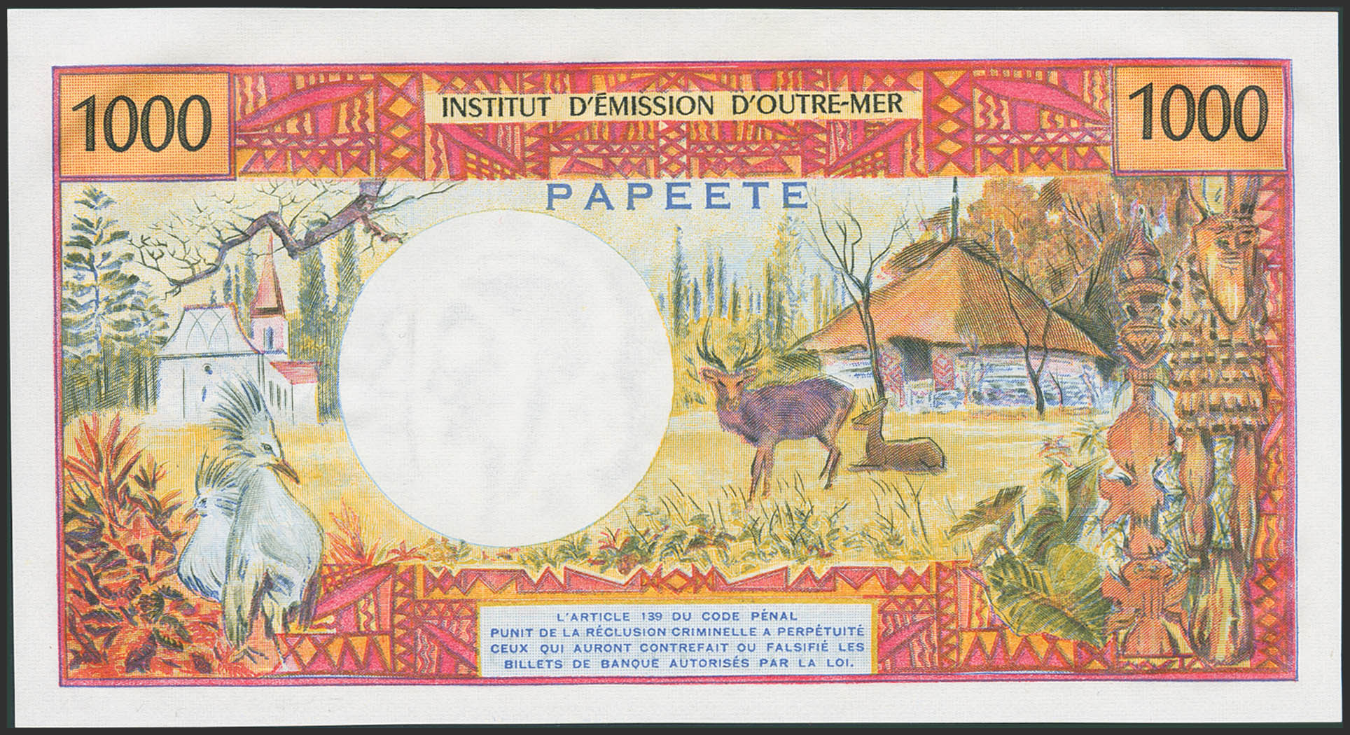 TAHITI. 1000 Francs. (1985ca). Institut d'Emission d'Outre-Mer, papeete. (Pick: 27d). Uncirculated.