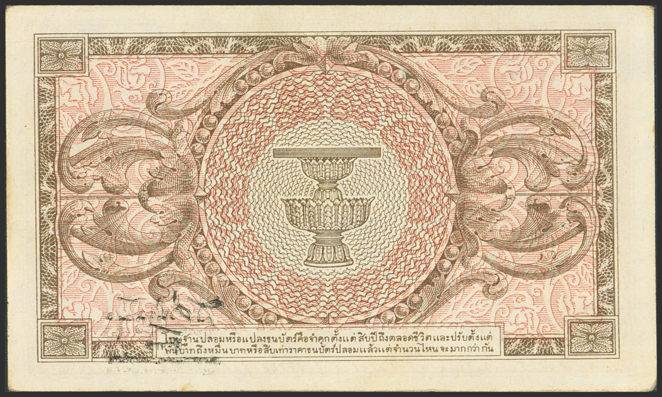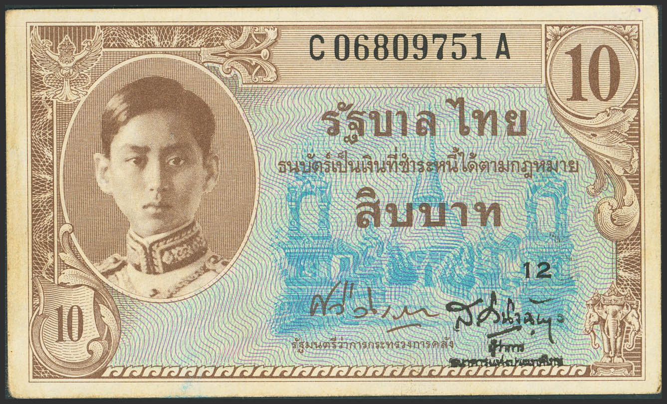 THAILAND. 10 Baht. (1946ca). Government. (Pick: 65b). Extremely Fine.