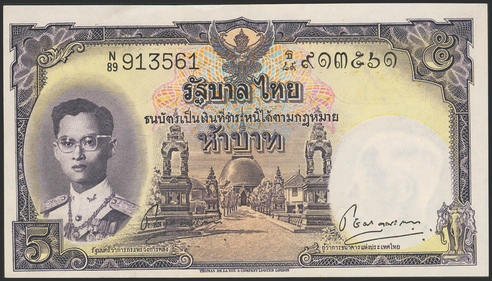 THAILAND. 5 Baht. (1955ca). Government. (Pick: 75d). About Uncirculated.