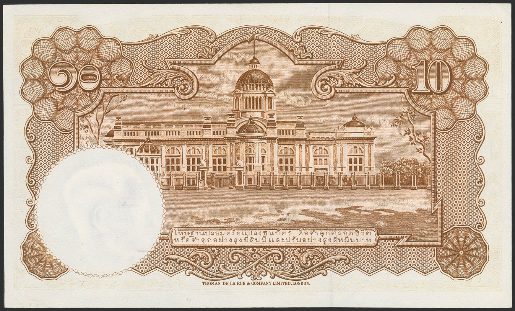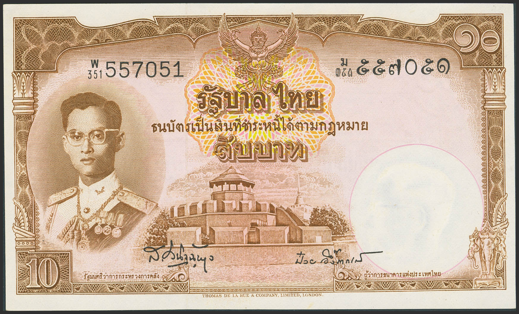 THAILAND. 10 Baht. (1955ca). Government. (Pick: 76d). Less than Uncirculated.
