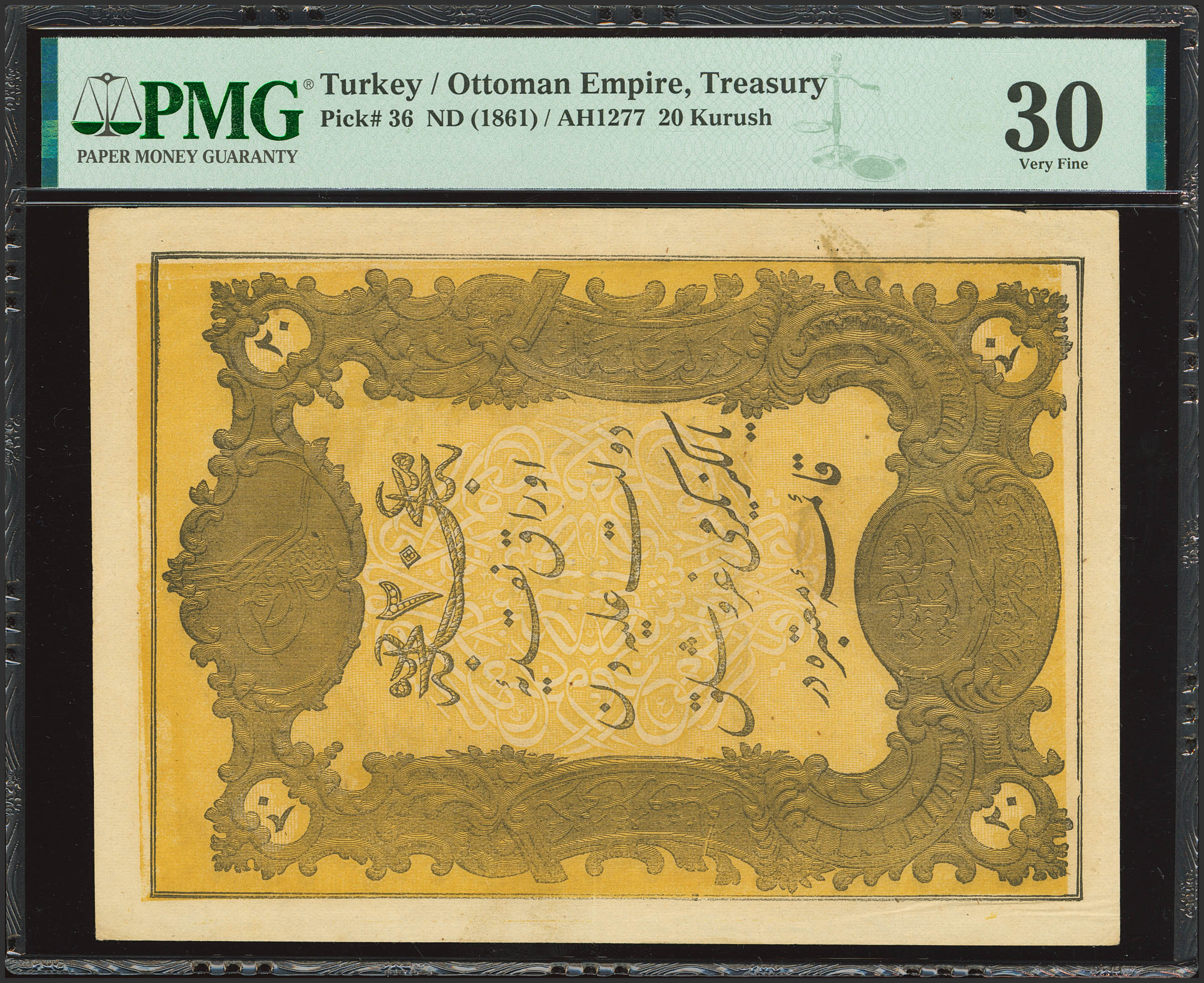TURKEY. 20 Kurus. 1861. Treasury. Toughra of Abdul Aziz. (Pick: 36). PMG30 (as made ink).
