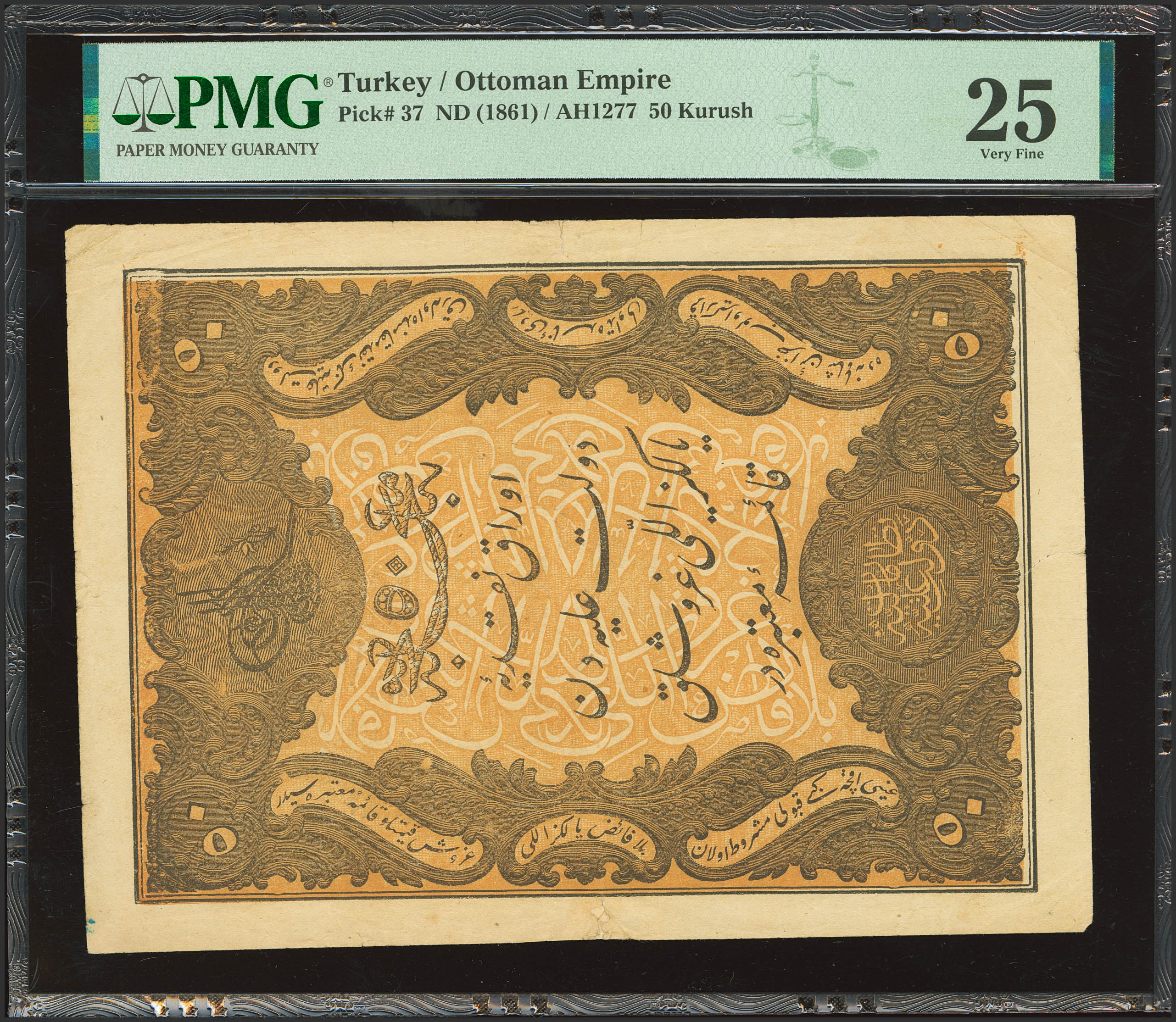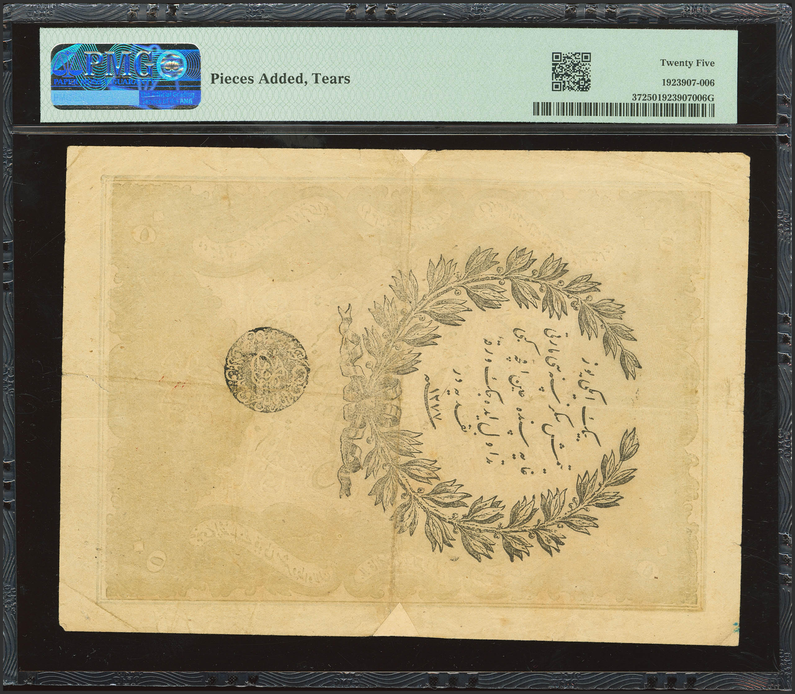 TURKEY. 50 Kurus. 1861. Treasury. Toughra of Abdul Aziz. (Pick: 37). PMG25 (pieces added, tears).