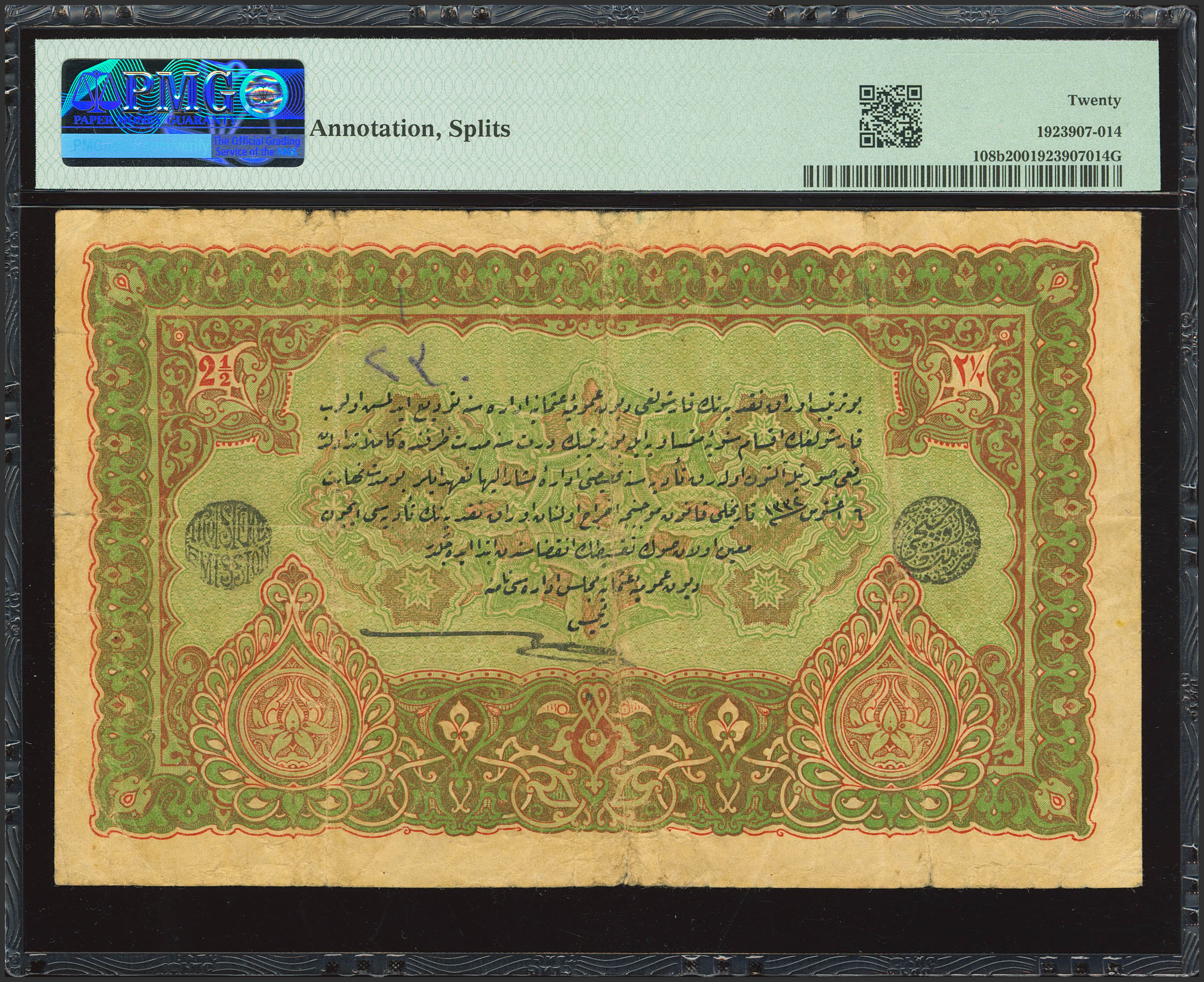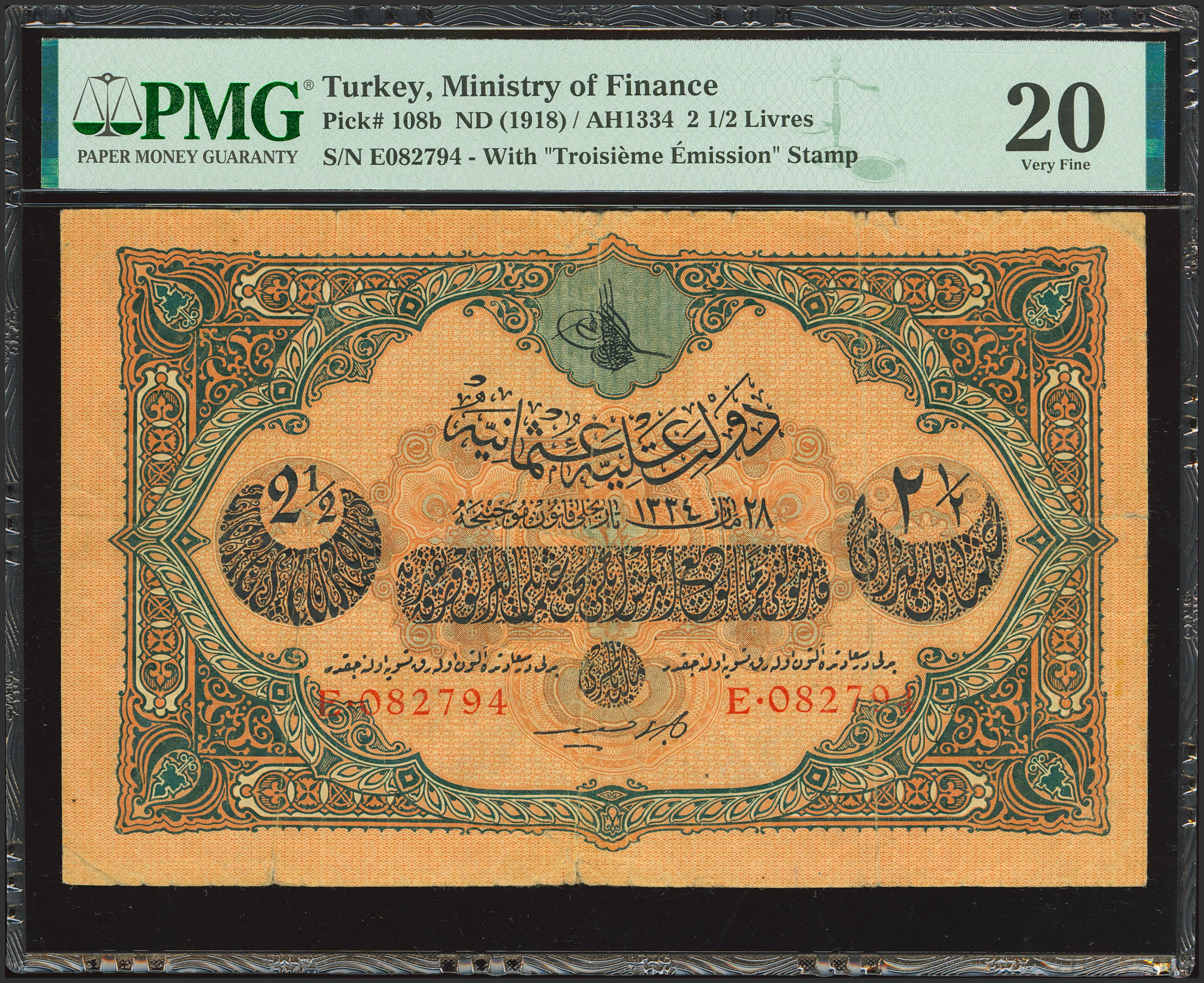 TURKEY. 2 ½ Livres. 28 March 1918. Banque Imperiale Ottomane. (Pick: 108b). PMG20 (annotations, split).